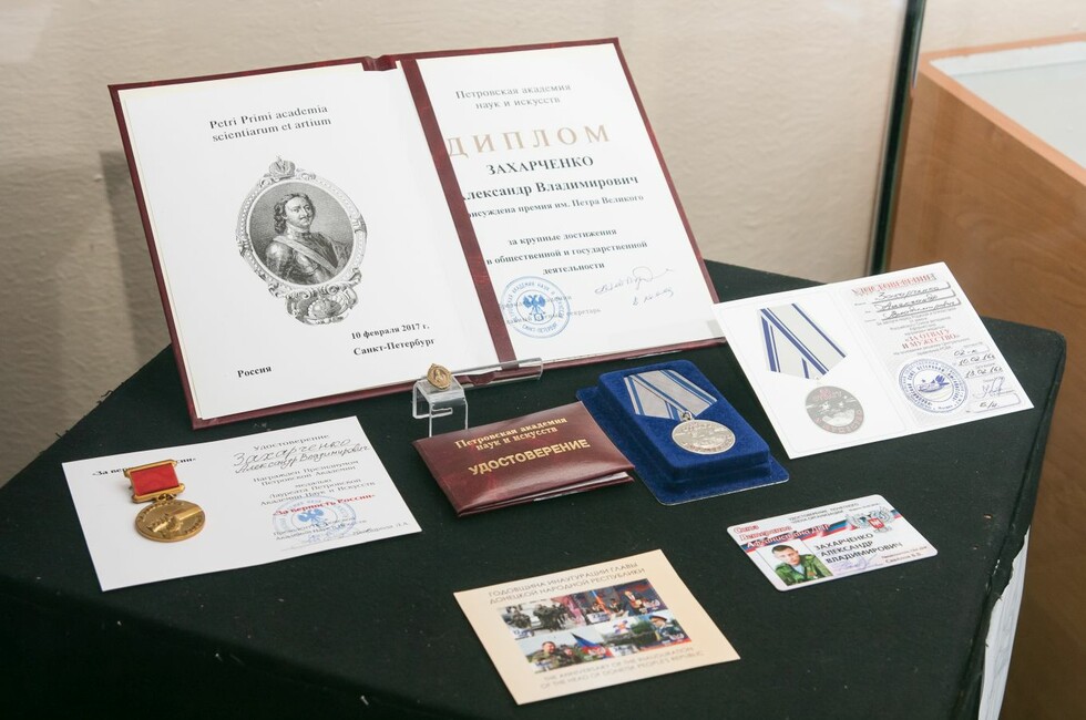 «Музейная выставка «Мы строим Республику», посвященная 5-летию ДНР, дополнена экспонатами, связанными с именем Александра Захарченко. Среди них можно увидеть фотографии, награды и документы первого Главы; предметы интерьера кафе «Сепар», в котором погиб Александр Владимирович и его охранник Вячеслав Доценко; поражающие элементы взрывного устройства», – сказано в сообщении.