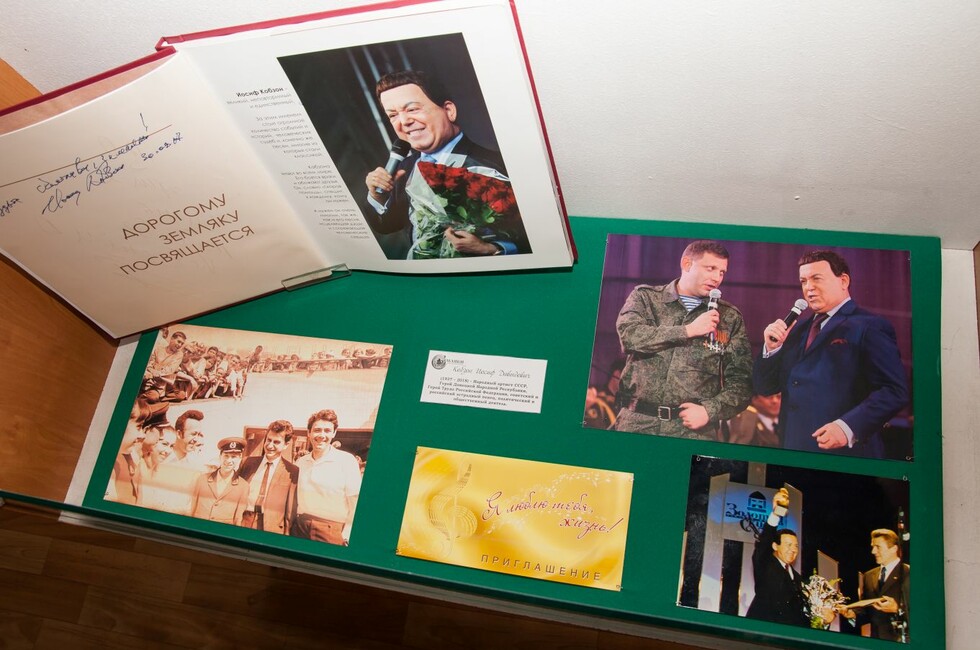 В пресс-службе добавили, что также музейная экспозиция «Земляки», где, в частности, представлены предметы, рассказывающие о жизни и деятельности Народного артиста СССР и ДНР Иосифа Кобзона, обновлена раритетными фотографиями с ним и фотоальбомом «Мне доверена песня. Иосиф Кобзон» с автографом легендарного певца.