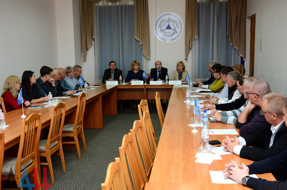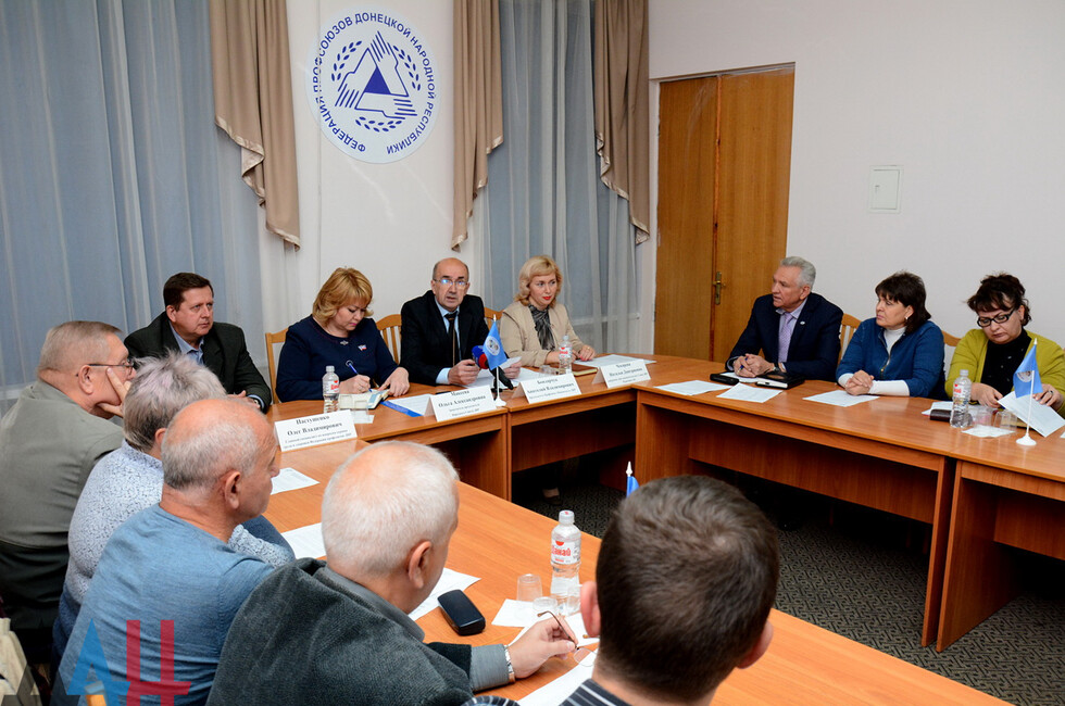Добавим, что заседание прошло в здании Дома профсоюзов в Донецке. В нем также приняли участие: председатель профсоюза машиностроения и металлообработки ДНР Анатолий Бондарчук, главный специалист по вопросам охраны труда и здоровья Федерации профсоюзов Олег Пастушенко, доверенное лицо кандидата на должность Главы ДНР Дениса Пушилина Наталья Чекарева, а также порядка 20 председателей профсоюзных комитетов предприятий Республик.