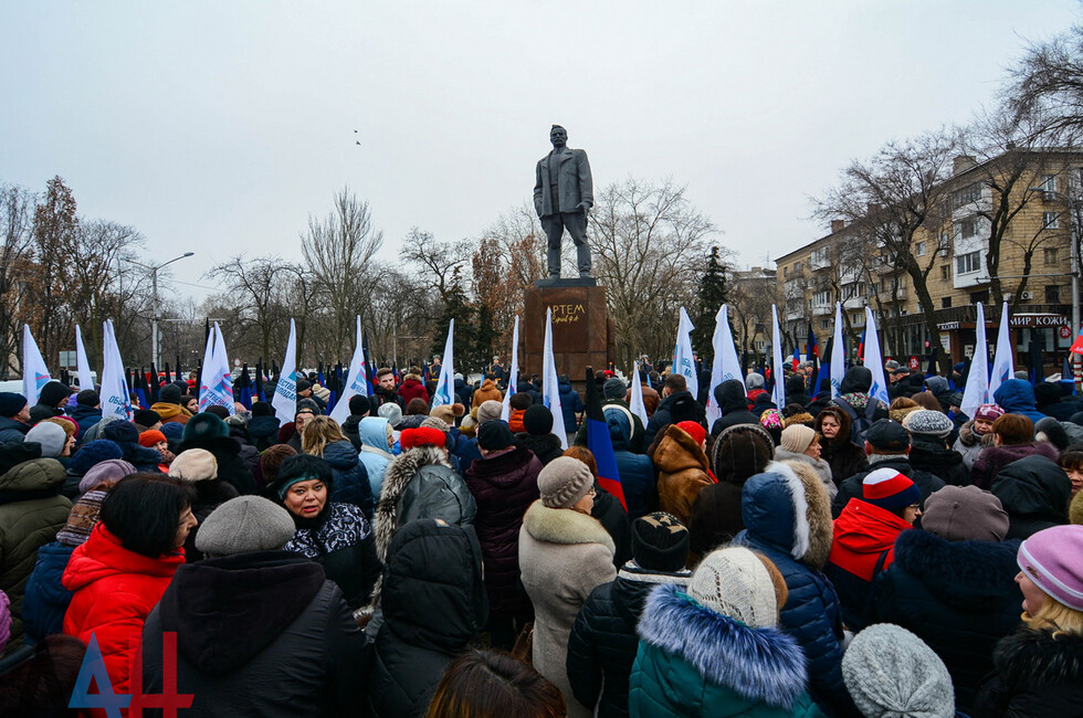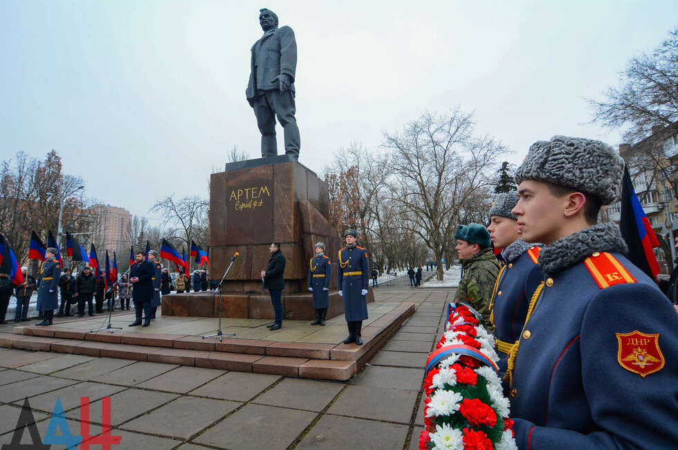 Донецк, 12 фев — ДАН. Около тысячи жителей ДНР сегодня приняли участие в митинге по случаю 101-й годовщины создания Донецко-Криворожской Республики (ДКР). Мероприятие прошло в центре Донецка у памятника легендарному революционеру Артему (Федору Сергееву).