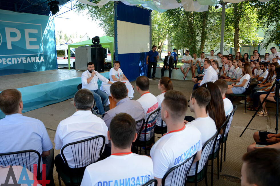 Донецк, 20 июл – корр. ДАН. Глава ДНР Денис Пушилин сегодня встретился с участниками форума республиканской молодежи «МОРЕ» в Седово. Мероприятие прошло на базе спортивно-оздоровительного лагеря «Монолит».