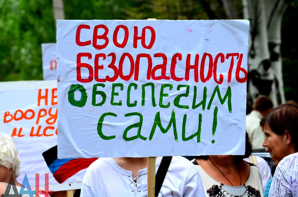 Донецк, 20 июл - корр. ДАН. Жители ДНР провели сегодня в Шахтерске учения по безоружному противодействию иностранным вооруженным миссиям, которые могут вторгнуться на территорию государства и угрожать безопасности мирного населения. Тренинг прошел в центре города и, по оценке корр. ДАН, собрал около двух тысяч участников.