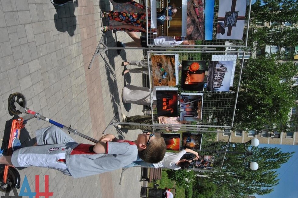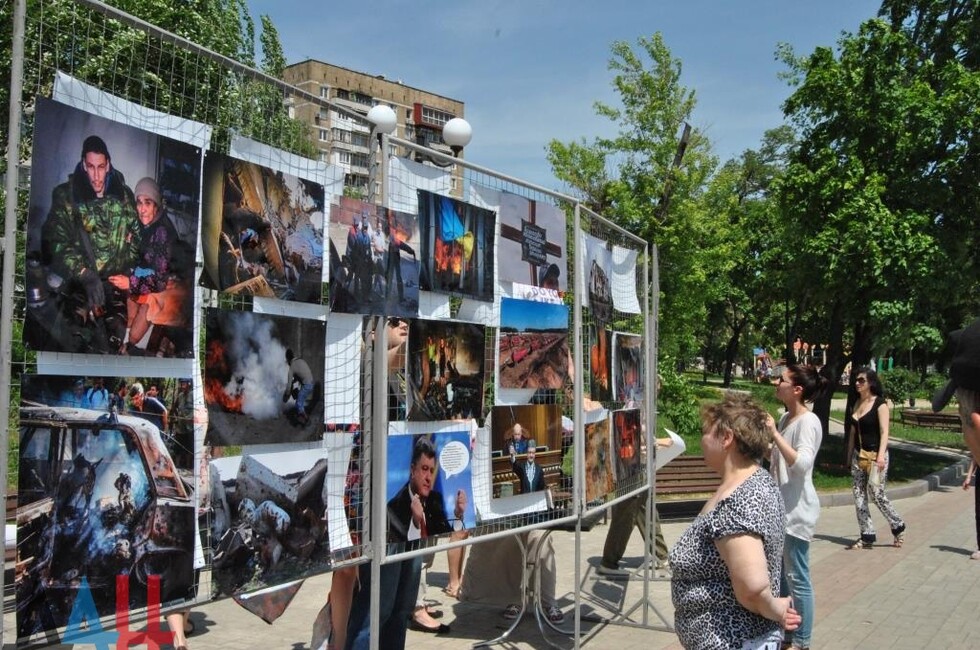 Донецк, 24 мая - ДАН. Фотовыставка, посвященная результатам года работы Петра Порошенко на посту украинского президента, состоялась сегодня на набережной реки Кальмиус в центре Донецка. Как рассказал корр. ДАН организатор выставки, депутат Народного Совета ДНР Сергей Цыплаков, посетители смогли не только ознакомиться с экспозицией, но и поставить свою оценку деятельности руководителю Украины.