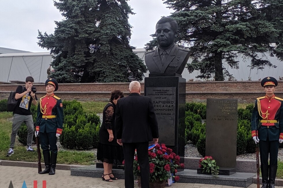 После этого присутствующие возложили цветы к бюсту Александра Захарченко. Спустя некоторое время подножье памятника было устлано розами и гвоздиками.