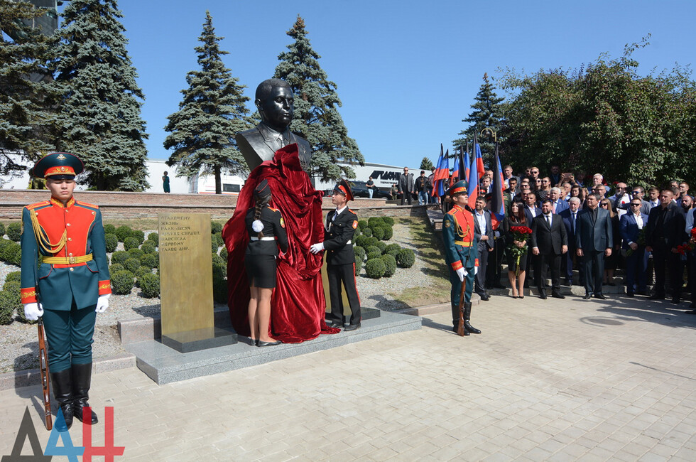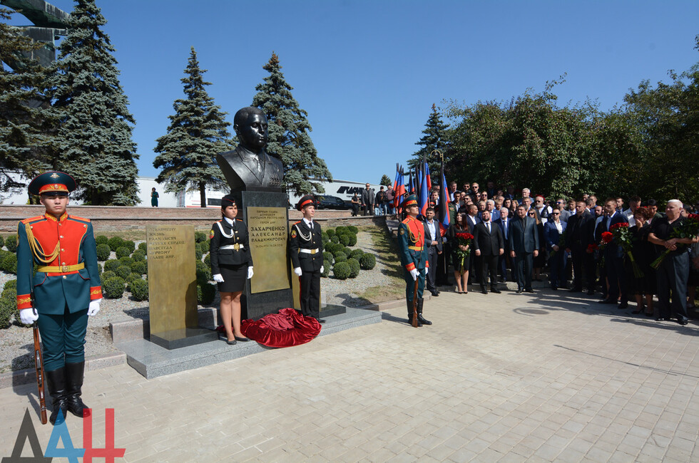 Донецк, 31 авг - корр. ДАН. Памятник первому Главе ДНР Александру Захарченко открыт сегодня в Донецке. Бюст установлен на Аллее Героев в парке имени Ленинского комсомола.