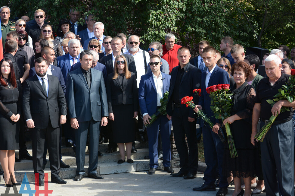 Церемония открытия состоялась на митинге-реквиеме, где более тысячи человек собрались, чтобы отдать дань памяти лидеру Донбасса.