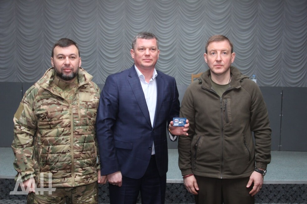 Донецк, 11 мая — корр. ДАН. Партийные билеты «Единой России» получили сегодня представители профсоюзов ДНР и МГЕР. Торжественное собрание прошло в День Республики в Донецке.