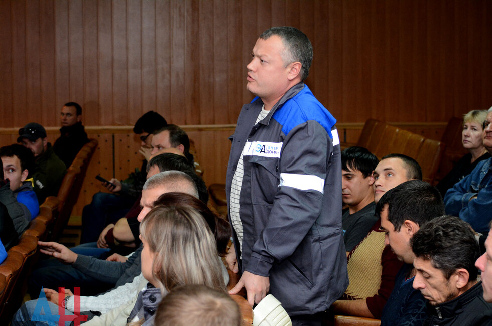 Также работники предприятия задавали вопросы о перспективах угольной и энергетической промышленности страны, снятии торговых барьеров между ДНР и ЛНР, социальном обеспечении жителей. Кроме того поднимались темы повышения зарплат, льгот для инвалидов, работы связи Vodafone.