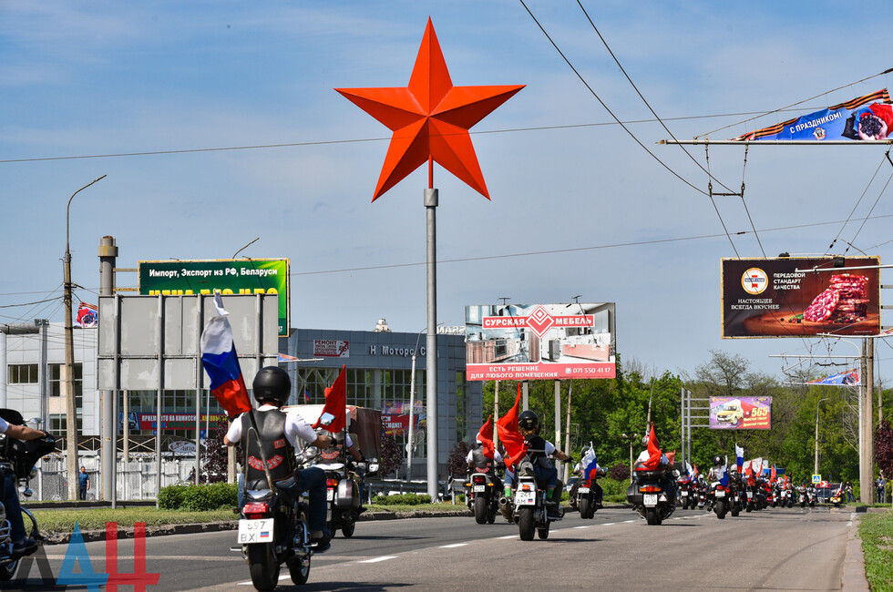 В первом пробеге приняли участие Глава ДНР Денис Пушилин и президент донбасского отделения «Ночных Волков» Виталий Кишкинов (позывной «Прокурор»). Они возглавили колонну из полутысячи мотоциклистов, которая с флагами РФ, ДНР и ЛНР проследовала по проспекту Ильича и остановились у донецкого офиса «Ночных Волков» возле автостанции «Мотель» в Донецке.