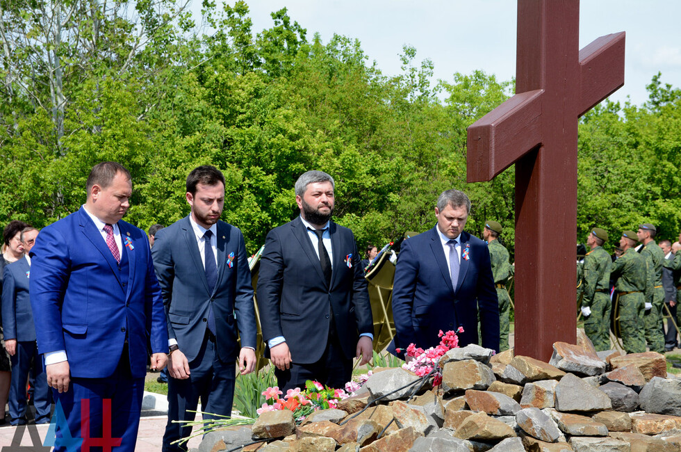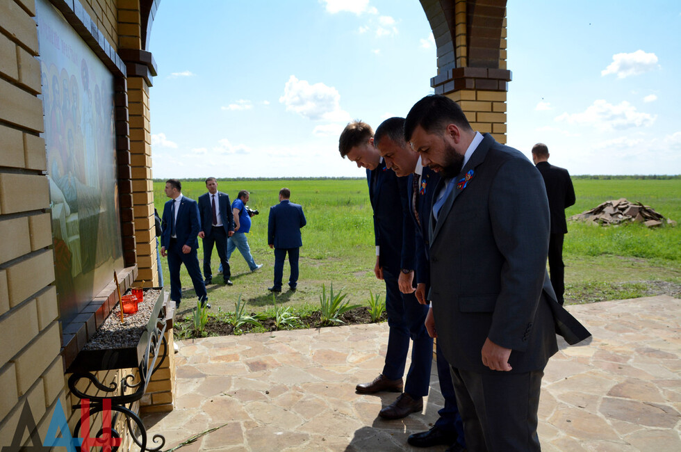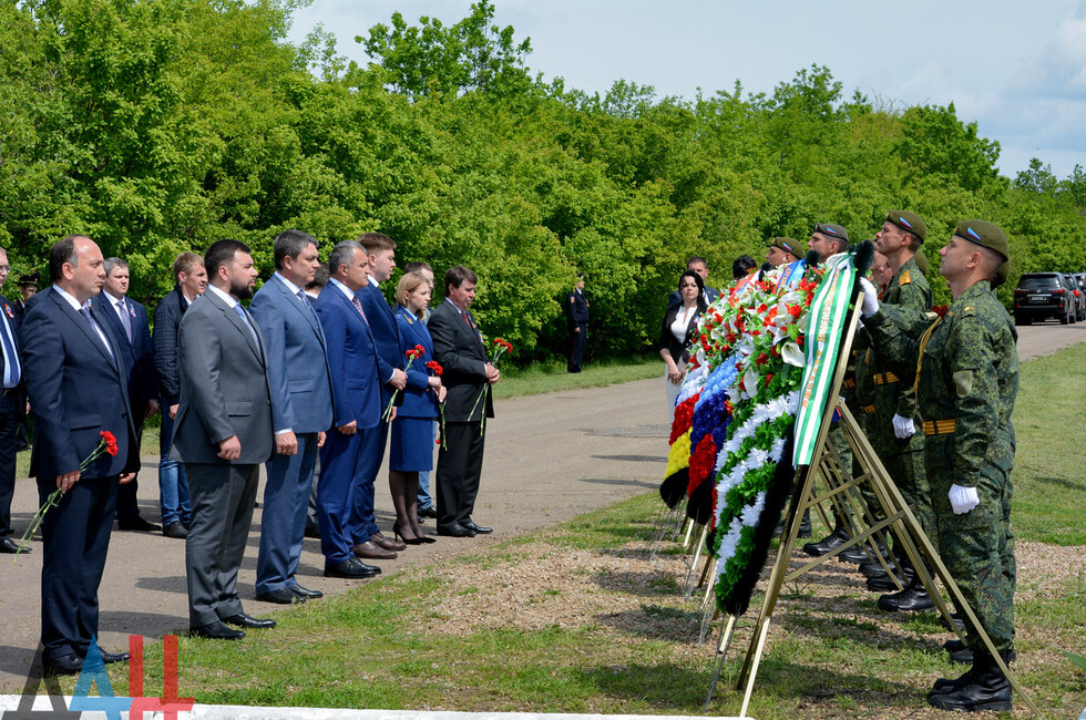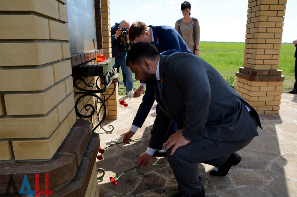 Видный (ЛНР), 12 мая – корр. ДАН. Глава Донецкой Народной Республики Денис Пушилин сегодня в ходе поездки в ЛНР возложил цветы в память о мирных жителях, погибших в результате военной агрессии Киева. Мероприятие прошло у мемориала «Не забудем, не простим» в поселке Видный.