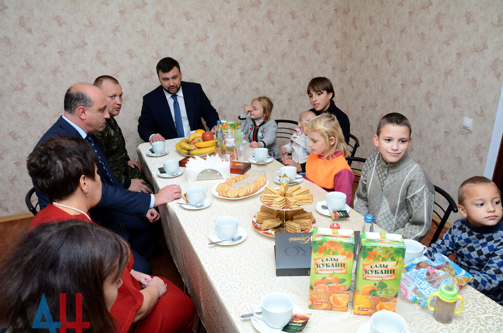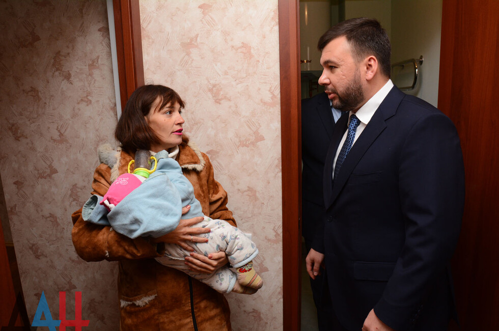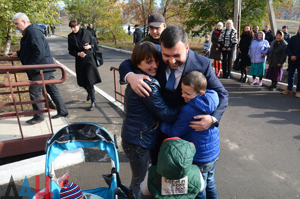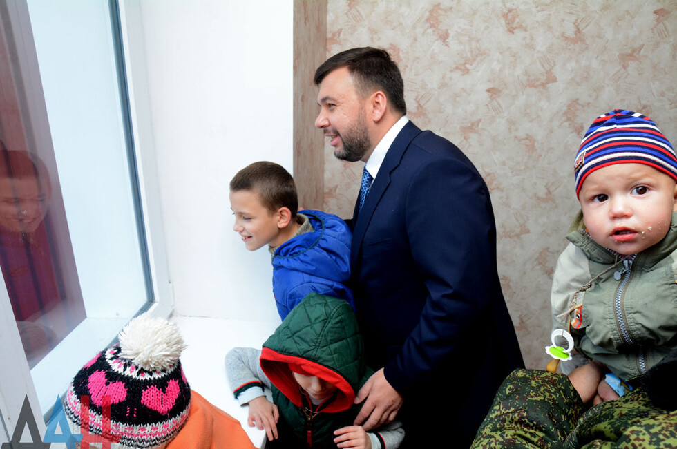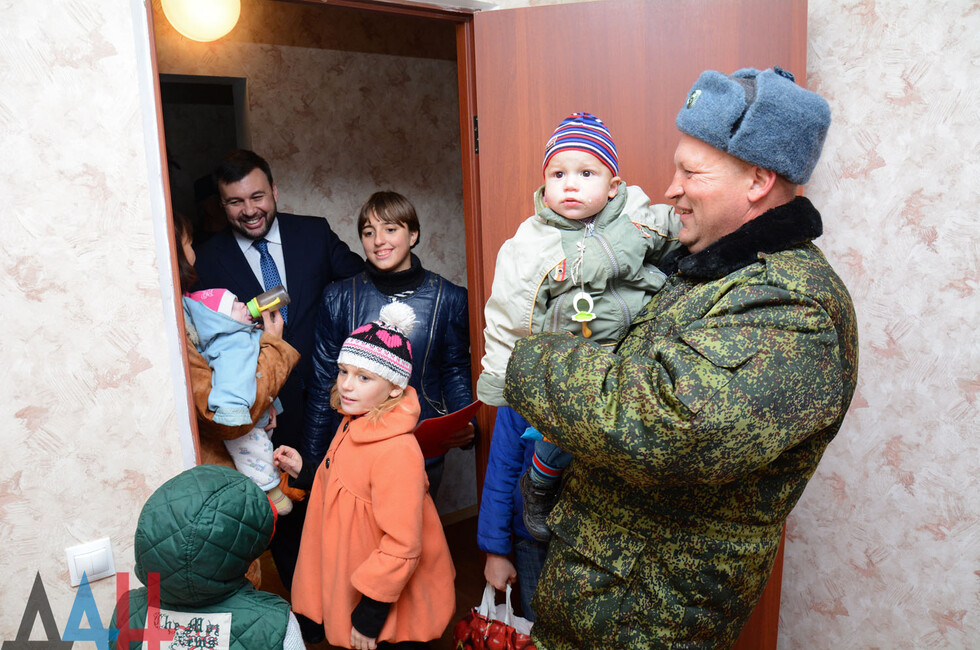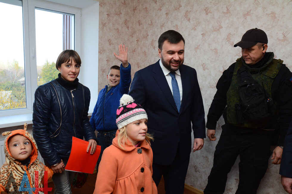 Юнокоммунаровск, 27 окт – корр. ДАН. Многодетная семья военнослужащего Народной милиции ДНР получила четырехкомнатную квартиру в городе Юнокоммунаровск к северо-востоку от Донецка. Ключи от нового жилья вручил временно исполняющий обязанности Главы Республики Денис Пушилин.