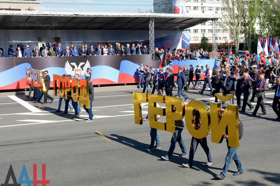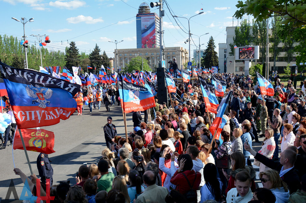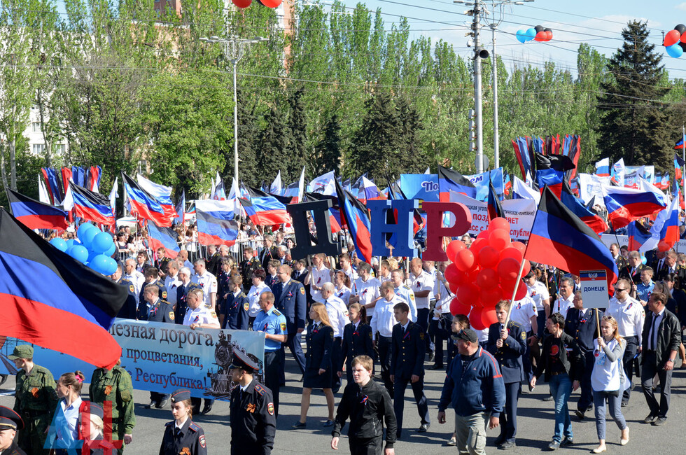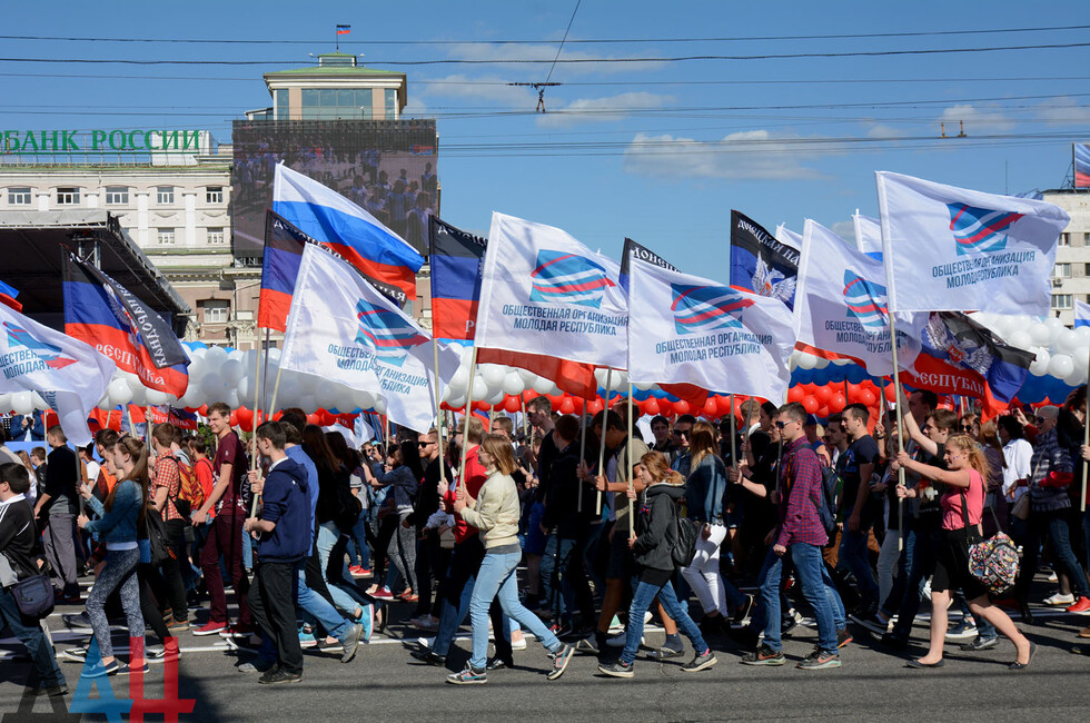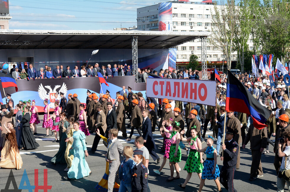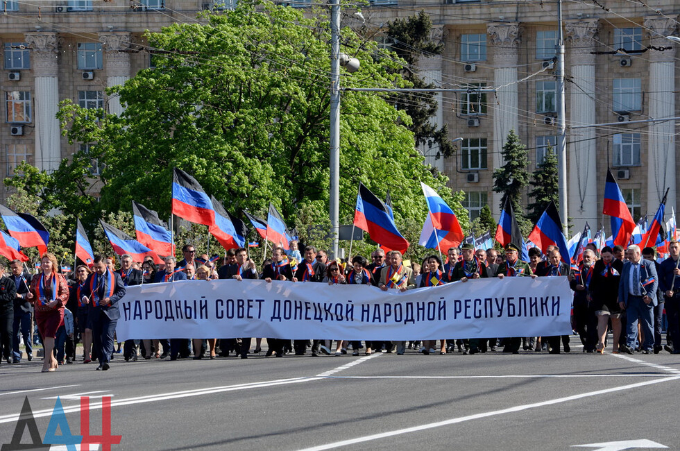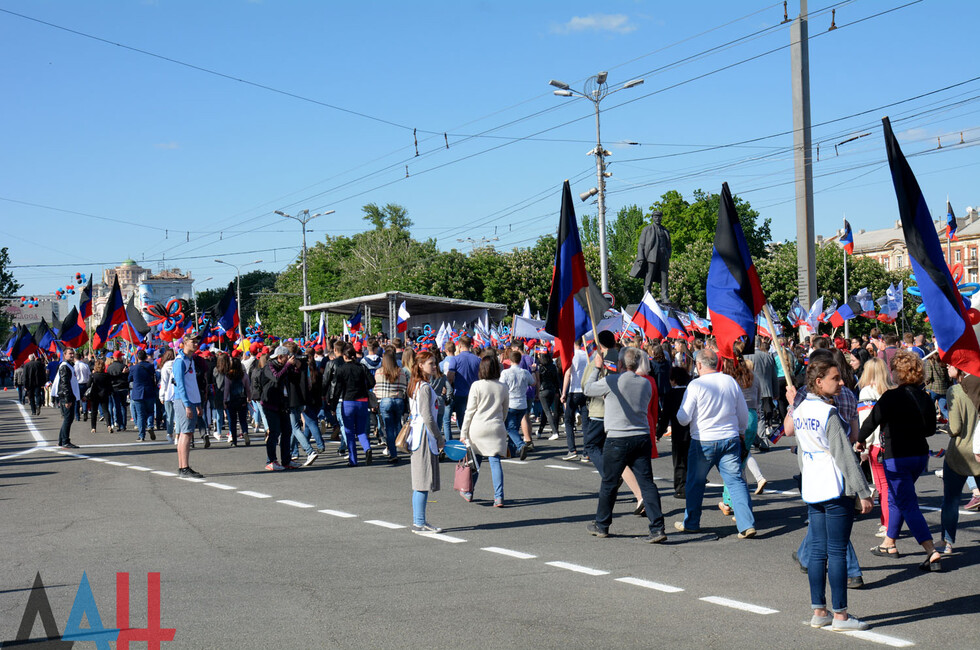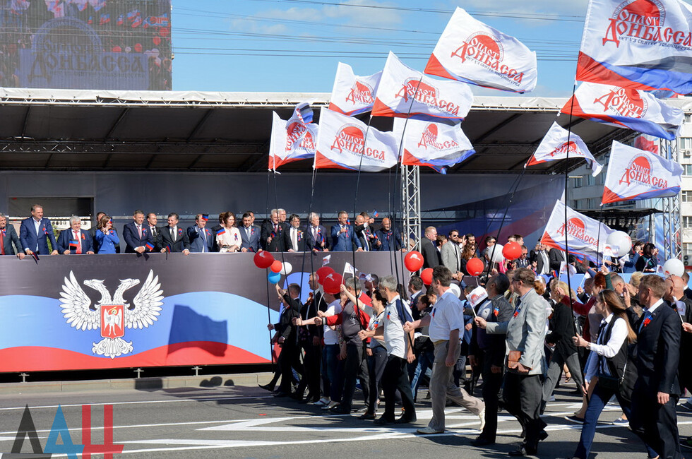 Донецк, 11 мая – ДАН. Праздничное шествие в честь четвертой годовщины со дня проведения всенародного референдума о самоопределении Донбасса началось сегодня в столице Донецкой Народной Республики. В марше участвуют свыше 35 тысяч человек, передает корр. ДАН с места события.