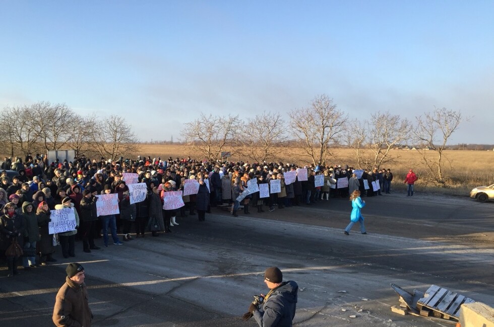 Донецк, 25 дек – ДАН. Около семисот жителей ДНР собрались сегодня на контрольно-пропускном пункте Республики в Еленовке на акцию против саботажа Киевом Минских соглашений. Об этом ДАН сообщил один из организаторов мероприятия.