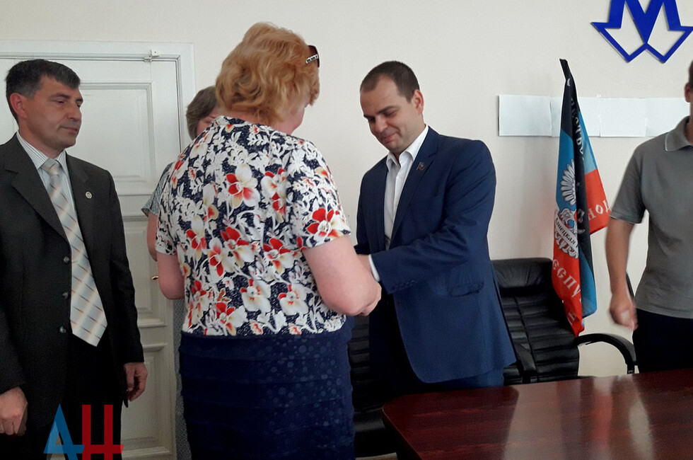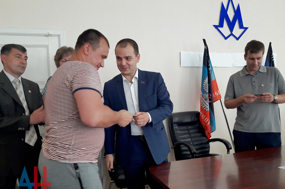Донецк, 14 июн – корр. ДАН. Девять сотрудников Донецкого металлургического завода ЗАО «Внешторгсервис» сегодня пополнили ряды активистов общественного движения «Донецкая Республика». Вручение членских билетов и значков провел руководитель парламентской фракции «ДР» Александр Костенко.