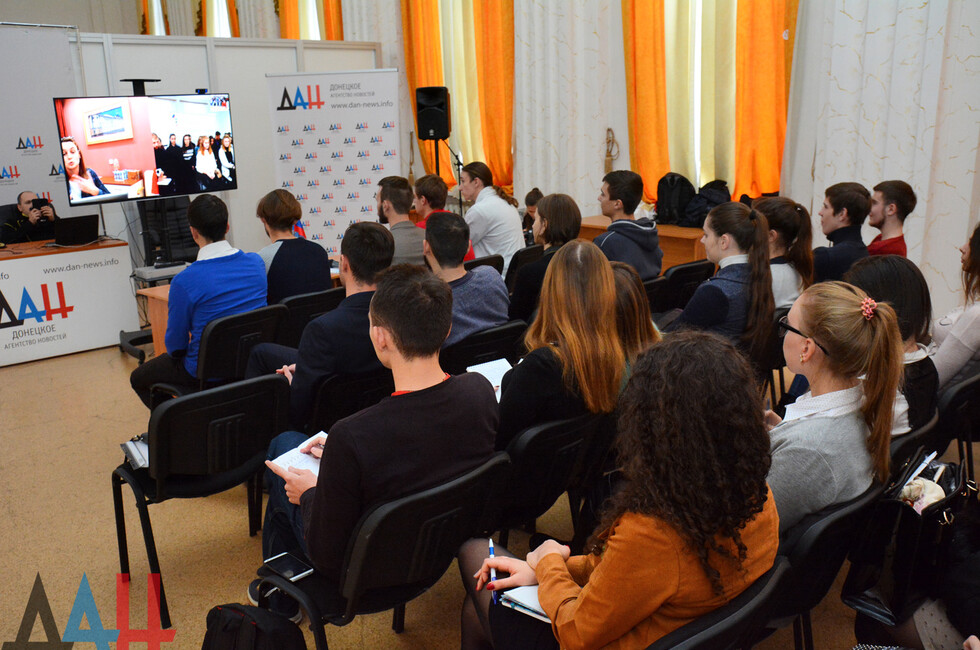 Донецк, 22 ноя – ДАН. Видеоконференция совместного с РФ проекта для студентов «Школа социального проектирования», вторая по счету, состоялась сегодня в Донецке. Участники от ДНР вышли на связь из пресс-центра Донецкого агентства новостей.