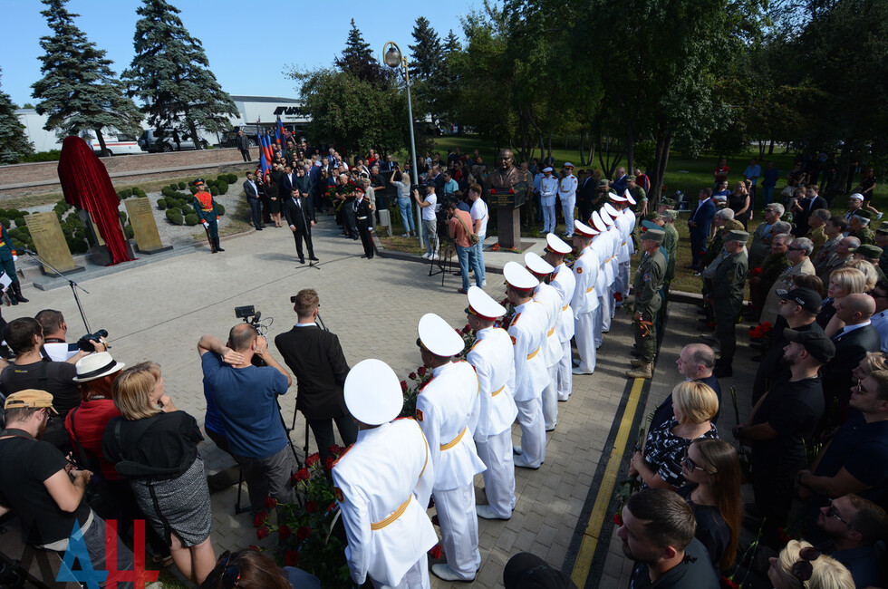 Как сообщалось ранее, здесь же состоялось открытие бюста первого Главы ДНР Александра Захарченко. Участники митинга возложили цветы к подножию нового мемориала: все основание памятника вскоре оказалось устлано цветами.