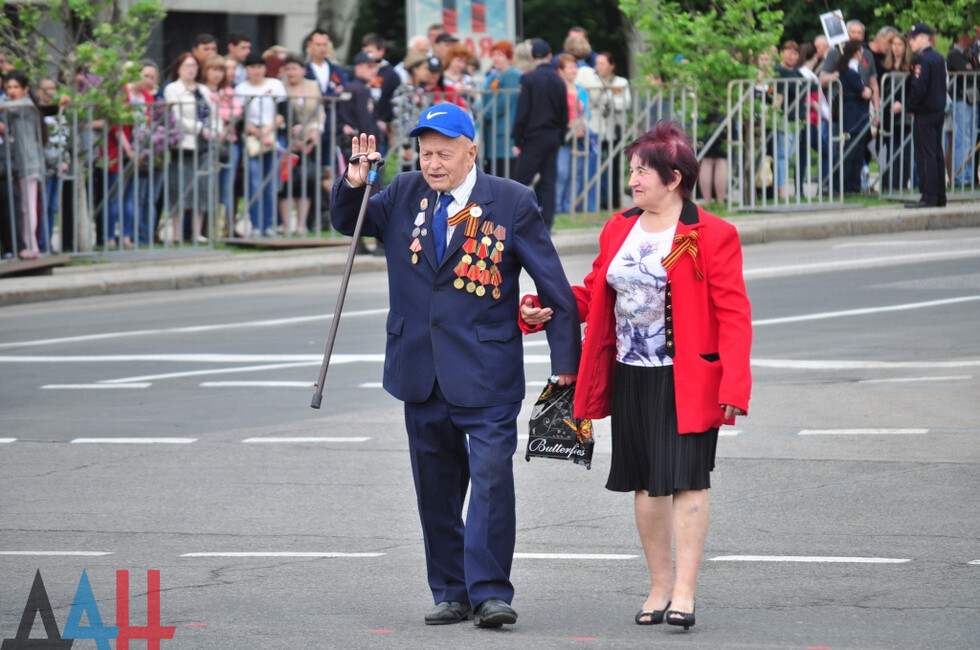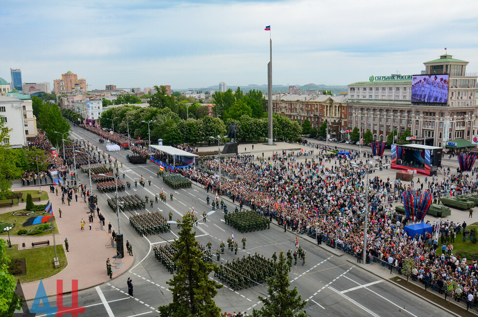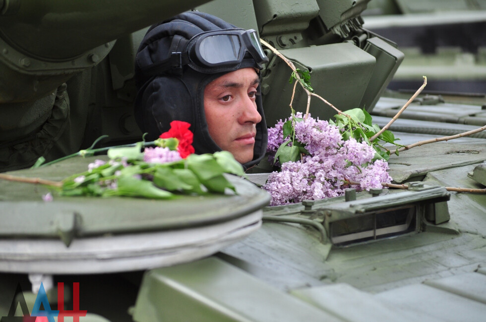 Донецк, 9 мая – корр. ДАН. Военная техника и парадные расчеты прошли торжественным маршем по центру Донецка. Парад, осененный сегодня знаменем Победы и стягом ДНР, стал достоянием истории.