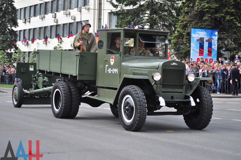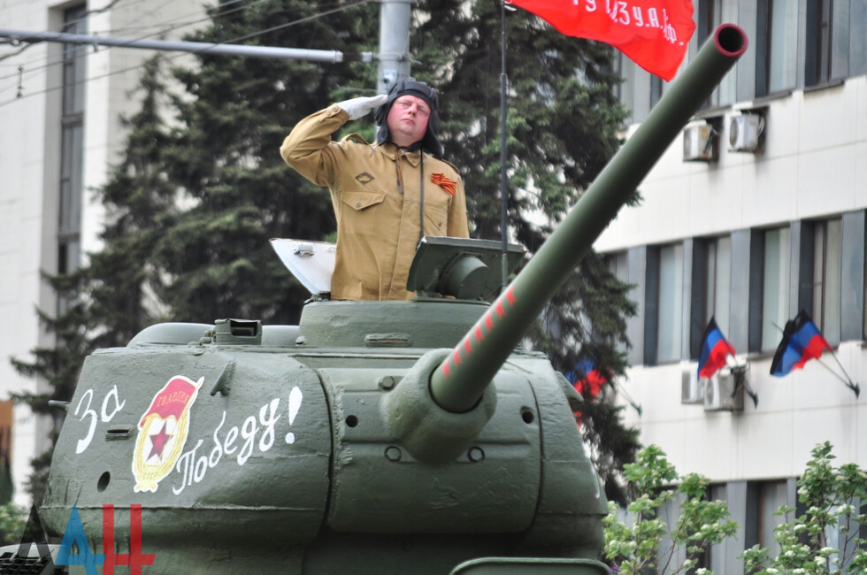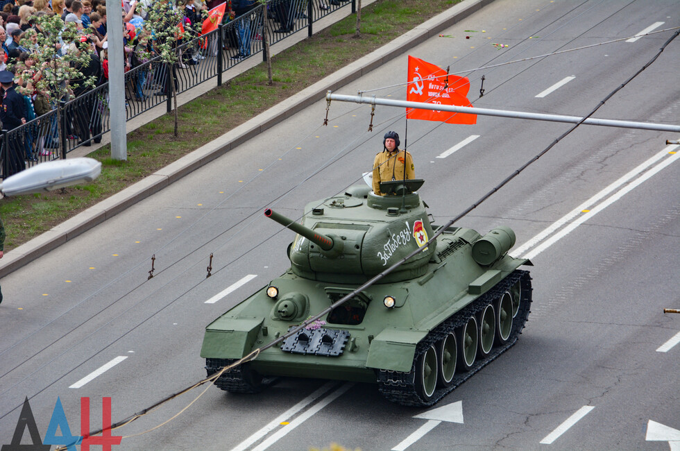 Самой яркой частью Парада стало прохождение механизированной колонны. Легендарный Т-34 вновь предстал перед многочисленной публикой. Именно этот танк стоял на Саур-Могиле, а в 2014-м оказался в эпицентре боев за легендарную высоту. Вместе с ним по центру Донецка проехала и другая техника, непревзойденная армией нацистов, - штабной ГАЗ-67, «Катюша» и «полуторка».