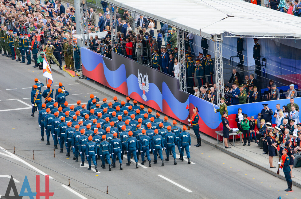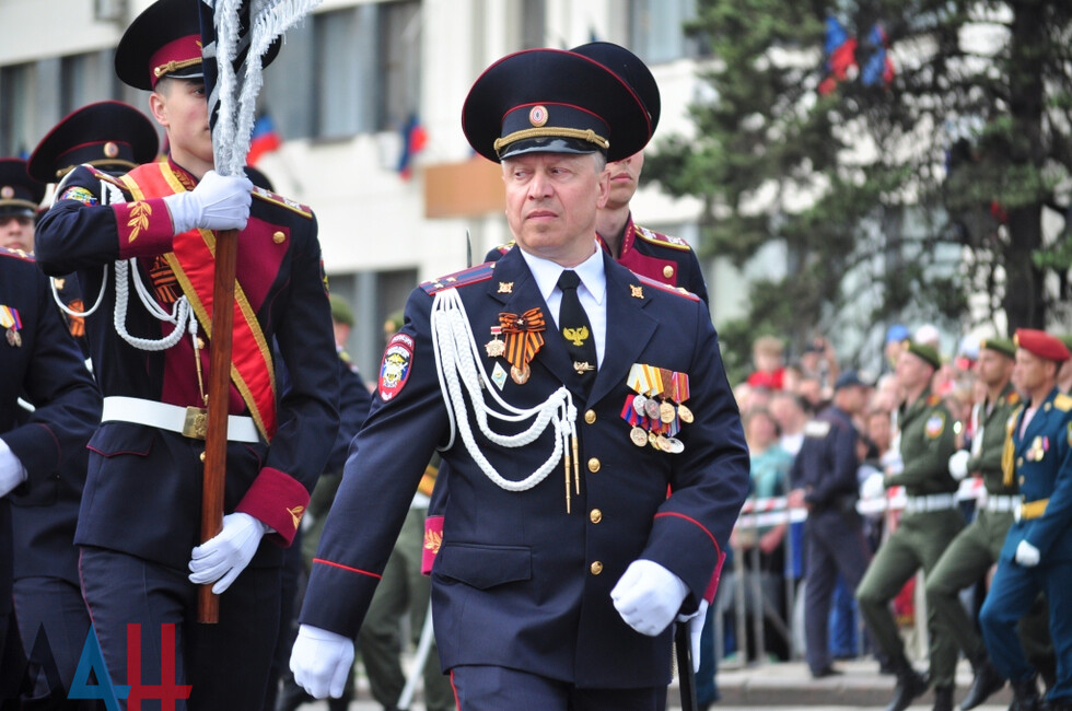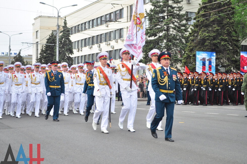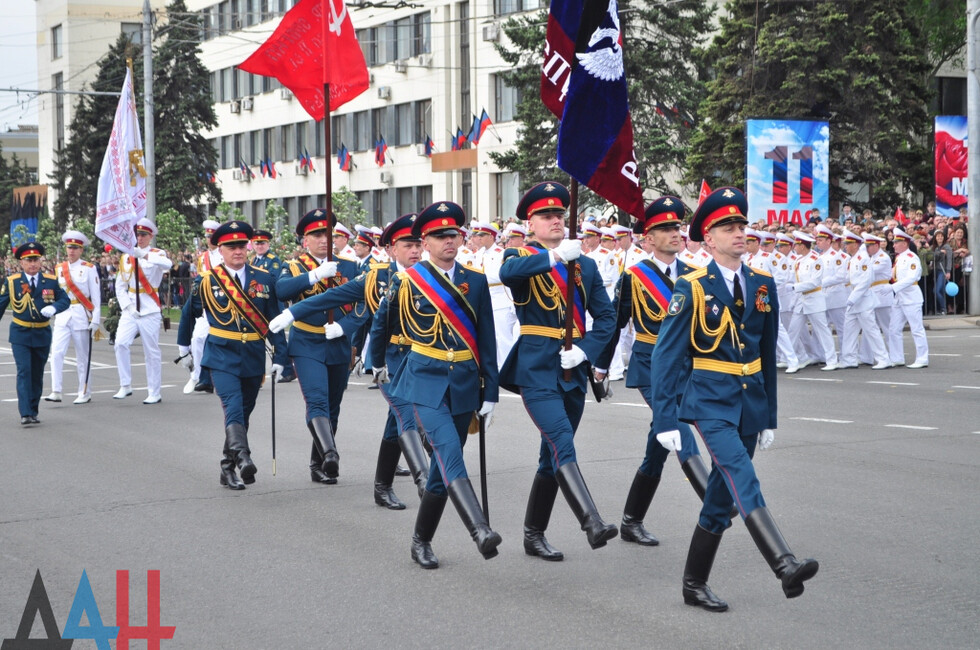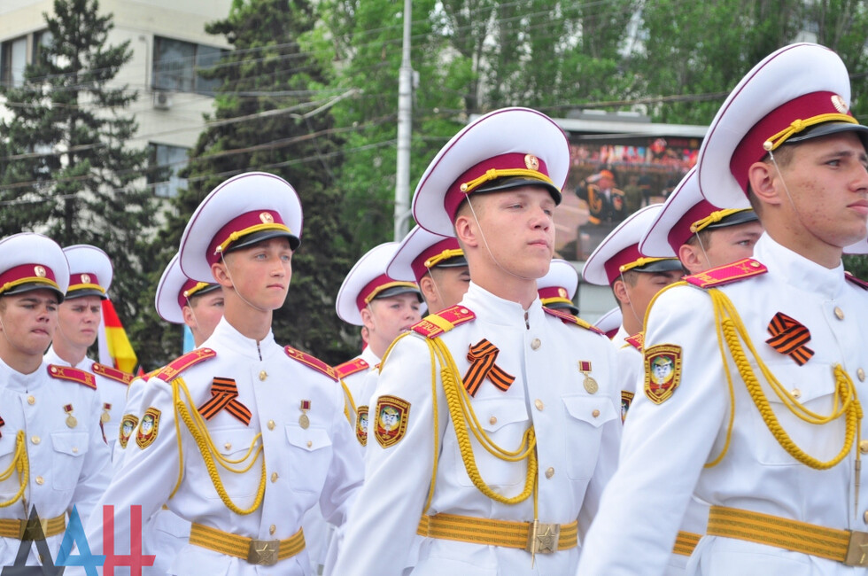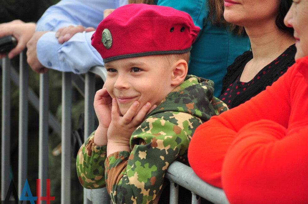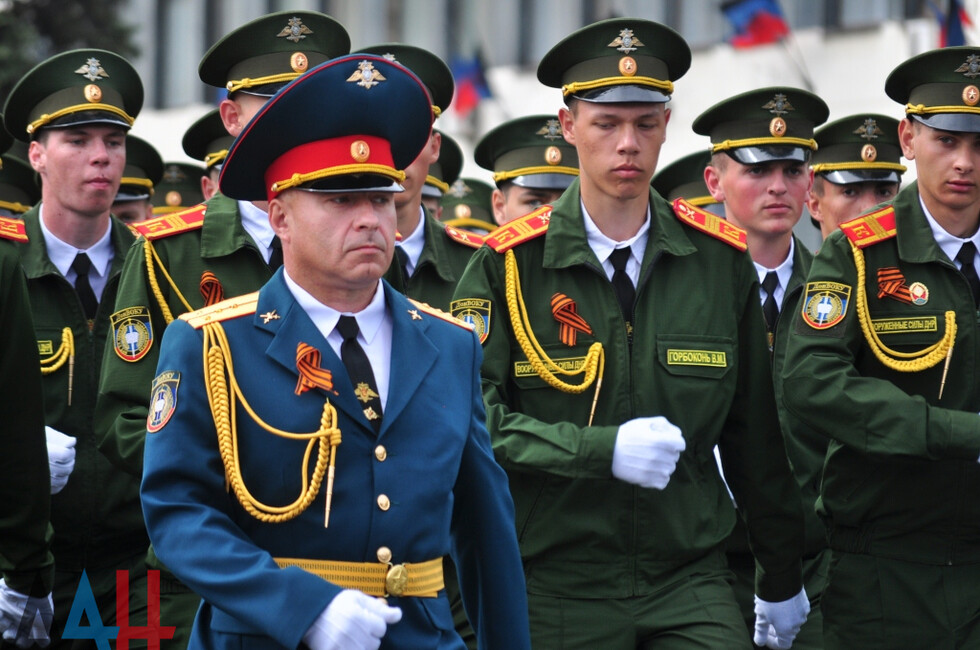 Торжественное шествие войск возглавил заместитель министра обороны ДНР генерал-майор, Герой ДНР Сергей Великородный. Вслед за ним на центральную улицу Артема вышли самые юные участники парада – рота воспитанников Республиканского военного лицея. В их числе был и Сергей Толстых - сын Героя ДНР, легендарного комбата Михаила Толстых (Гиви).