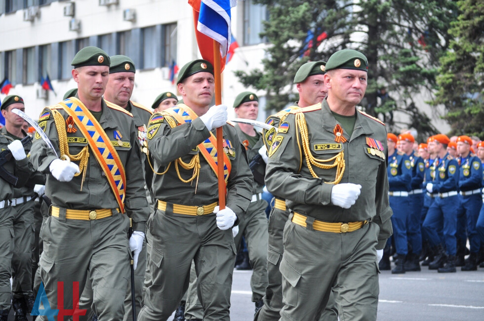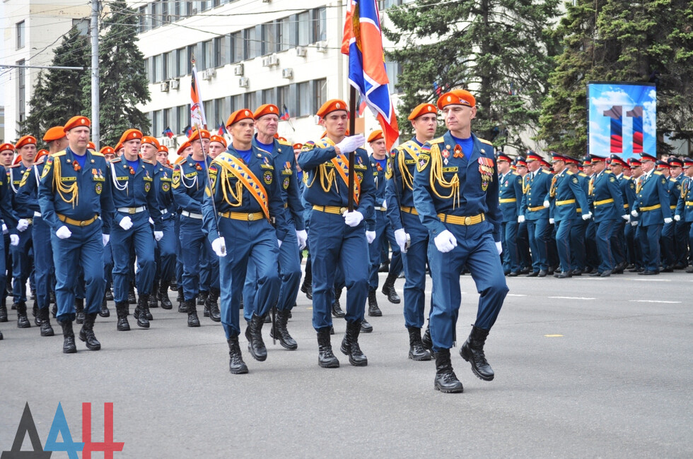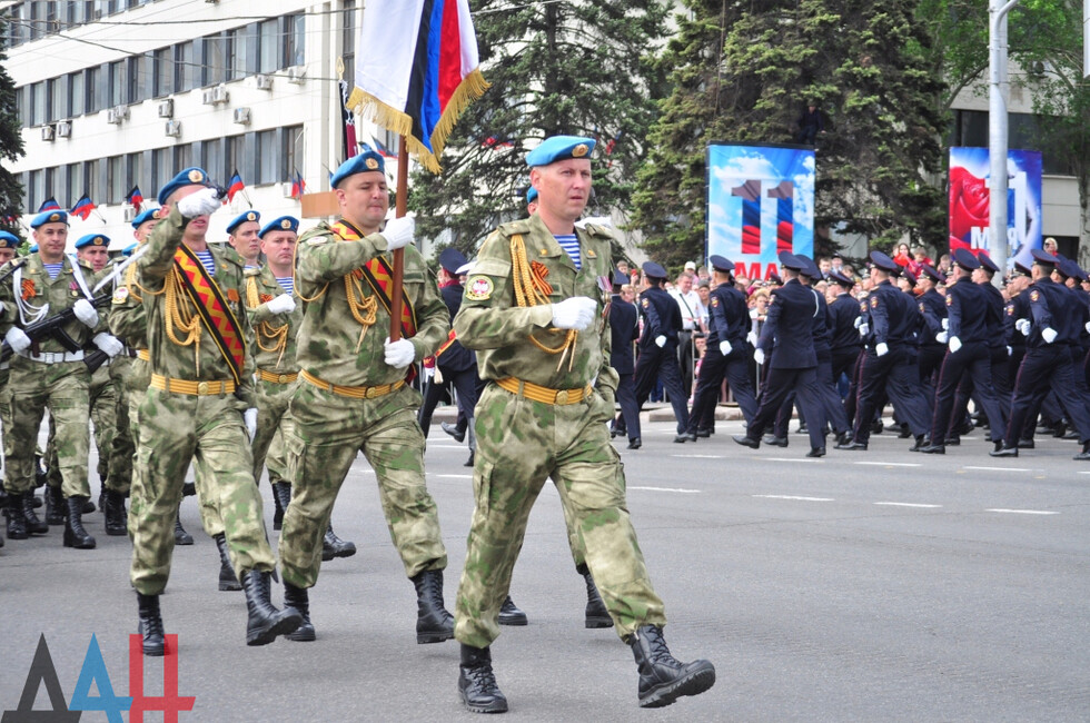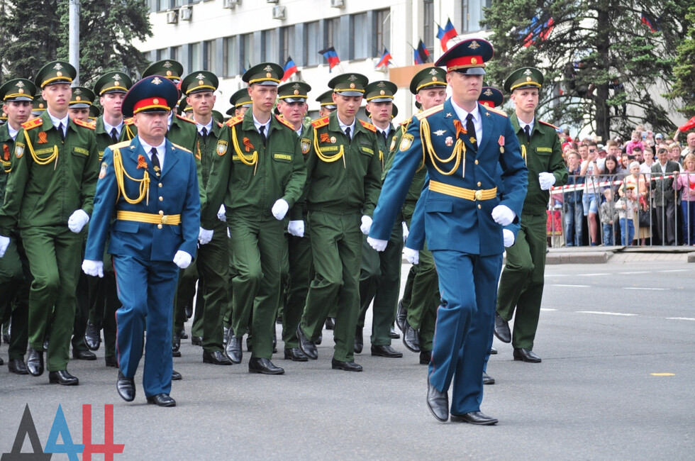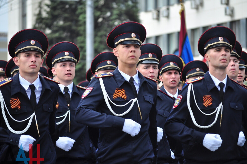 После ВС маршем по Донецку прошли курсанты академии МВД, а также личный состав внутренних войск. Именно он защищал Славянск, Донецкий аэропорт, а сейчас несет службу под Ясиноватой и в горловском поселке Зайцево.
