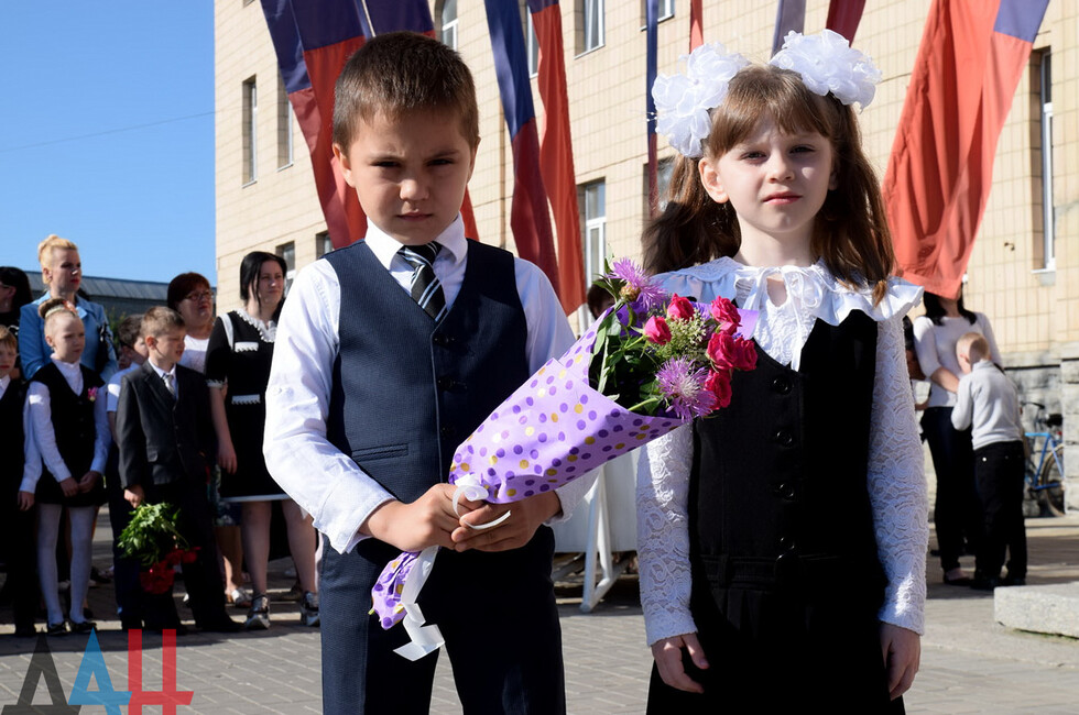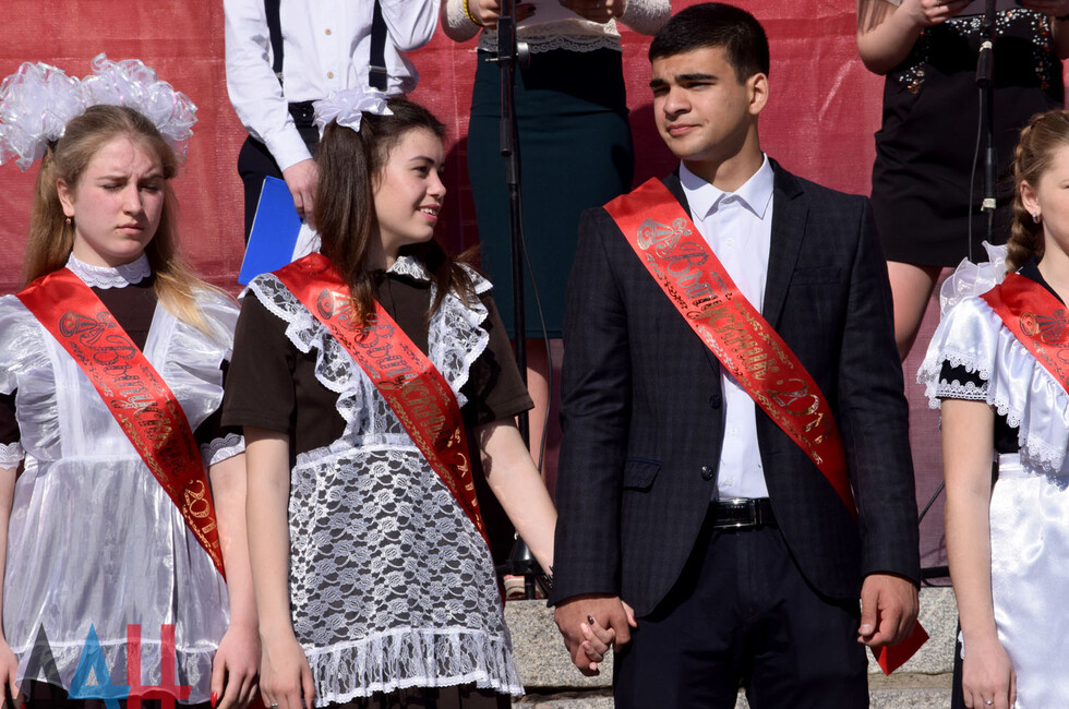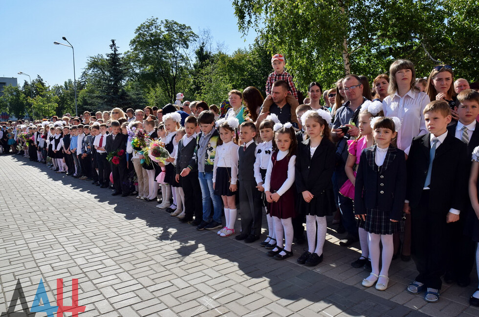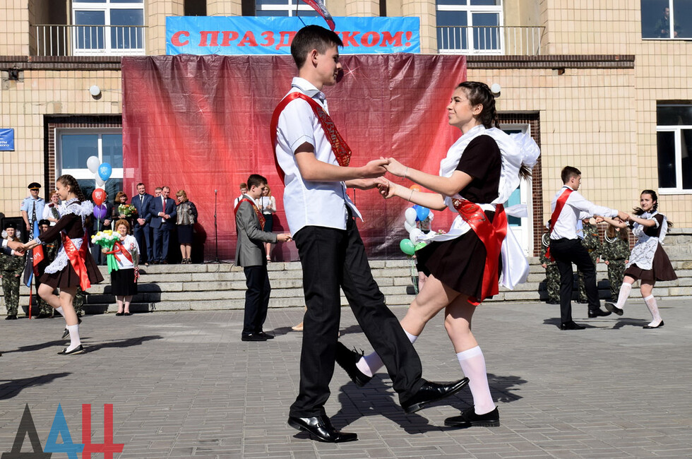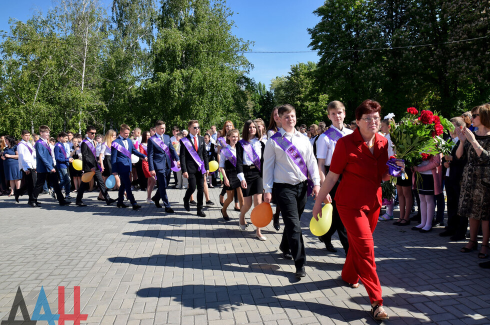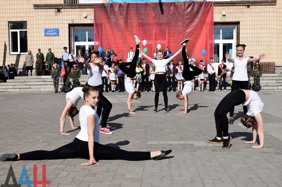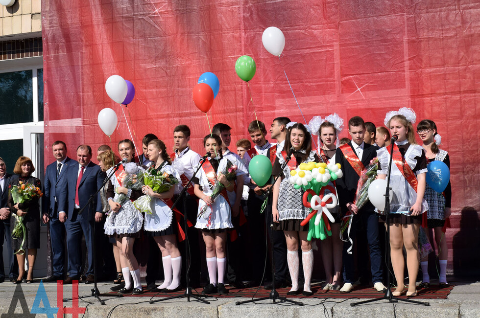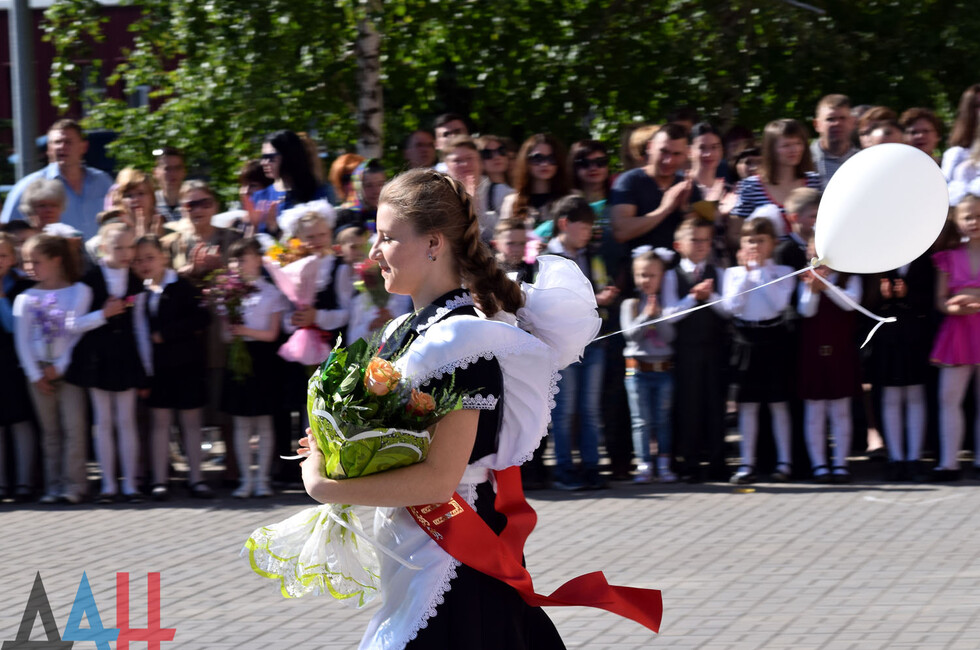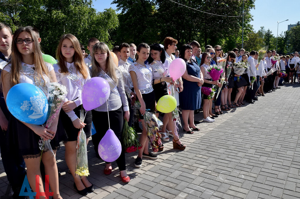 Донецк, 27 мая – корр. ДАН. Торжественная линейка по случаю праздника последнего звонка прошла для учащихся и выпускников прифронтовой школы №101 Петровского района на западе Донецка. Мероприятие было организовано на площадке у Дворца культуры имени Петровского поблизости учебного заведения.