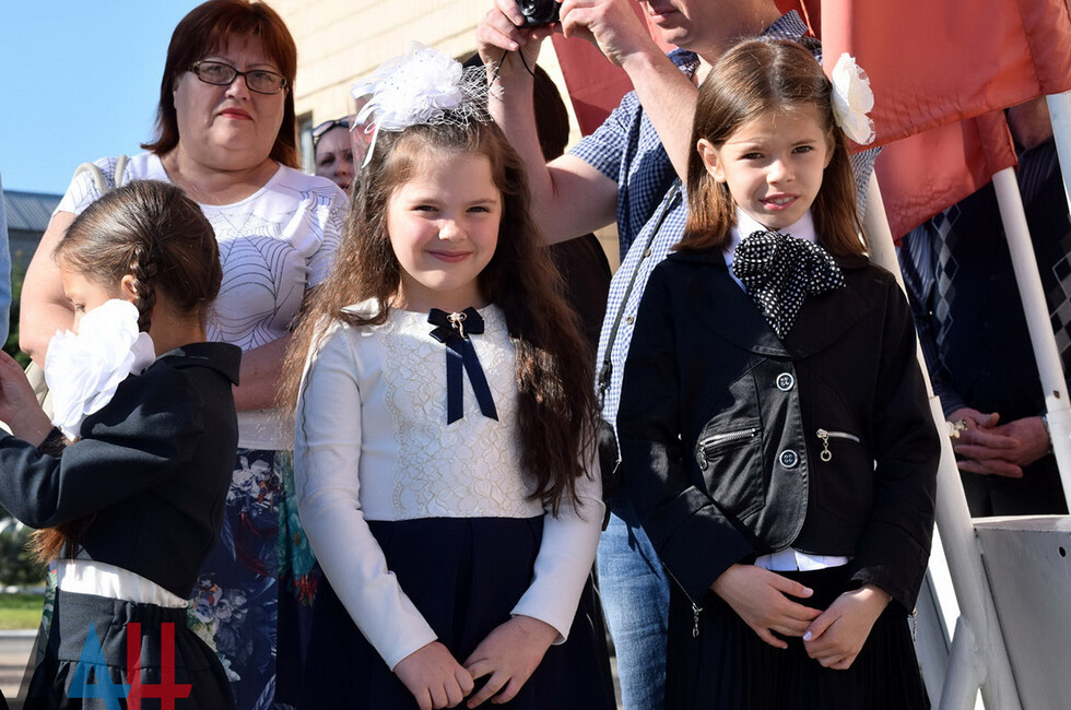 Торжественное открытие праздничной линейки началось с выноса флага Донецкой Народной Республики участниками военно-патриотического клуба «Патриот». Затем в центр площадки вышли основные виновники торжества – выпускники 11-го класса. Всего их было 14 человек. Для них ученики младших и средних классов исполнили танцы, а первоклассники зачитали стихи, в которых пожелали выпускникам своими добрыми делами прославить родную школу на весь мир.