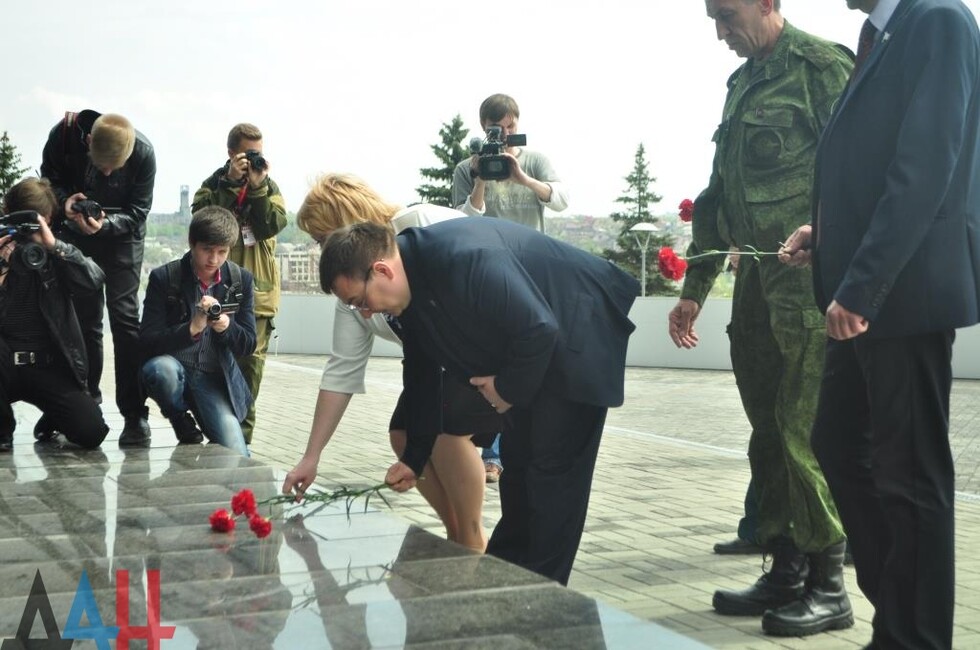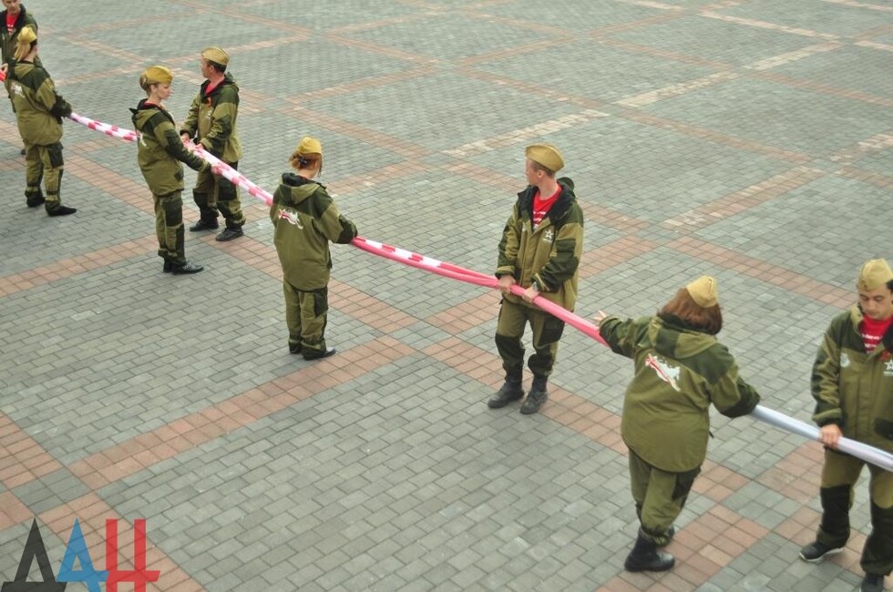 Принимали Знамя Победы от участников автомарша, которые в составе 20 человек в рамках акции прибыли из Севастополя, заместитель председателя Народного Совета ДНР Ольга Макеева, первый заместитель руководителя центрального исполкома общественного движения «Донецкая Республика» Андрей Крамар, активисты ОД «ДР» и общественной организации «Молодая Республика», а также парламентарии и представители горадминистрации.