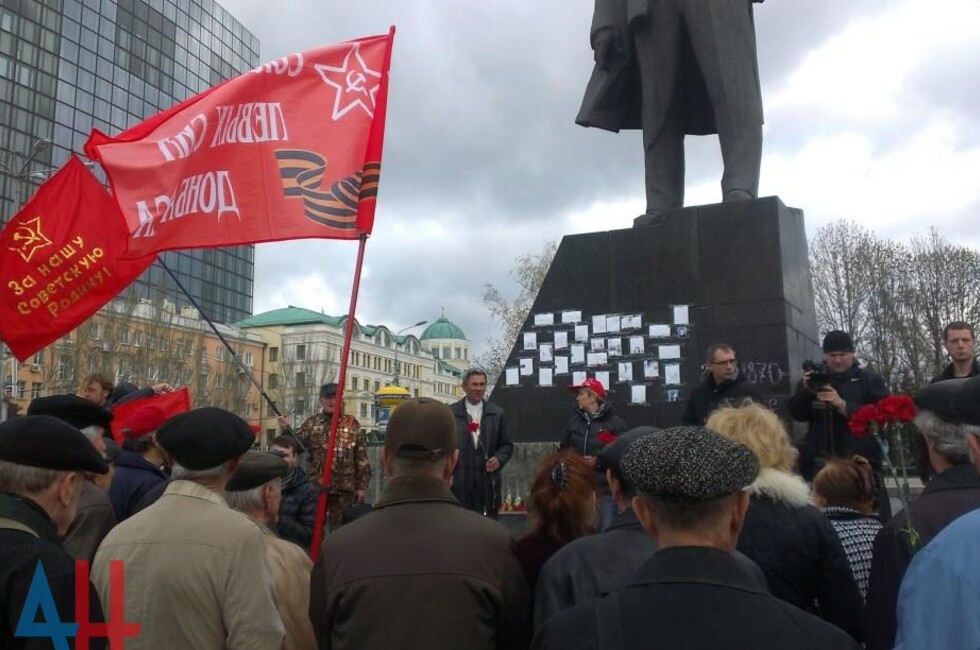 После уборки к статуе на площади Ленина возложили цветы, после этого состоялся небольшой митинг с участием ветеранов и пенсионеров. Участники мероприятия отмечали, что ситуация в Донецкой Народной Республике разительно отличается от событий на Украине, где советские памятники регулярно подвергаются сносу и осквернению.