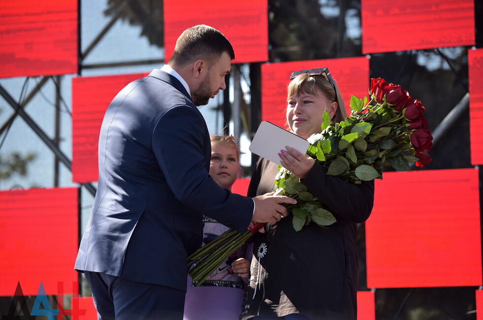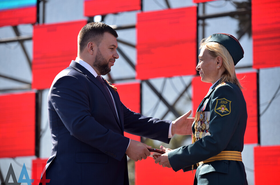 Церемонию открыл Глава ДНР Денис Пушилин. Первым делом он передал семье военкора Екатерины Василенко (псевдоним - Катя Катина) знак отличия «За заслуги перед Республикой» III степени, присвоенный журналисту посмертно. Далее семьям погибших военнослужащих были вручены три медали «За отвагу» и знак отличия «Георгиевский крест» IV степени.