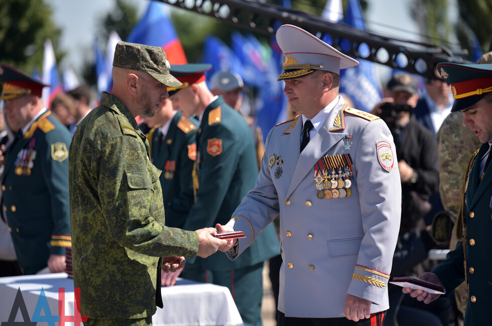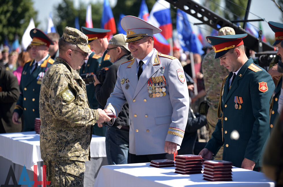 Затем министр внутренних дел ДНР Алексей Дикий, начальник Управления Народной милиции ДНР Денис Синенков и заместитель начальника УНМ Эдуард Пелишенко вручили ордена, медали и знаки отличия представителям всероссийской организации ветеранов «Боевое братство», организации «Союз добровольцев Донбасса», военнослужащим, работникам силовых структур, спасателям, журналистам.