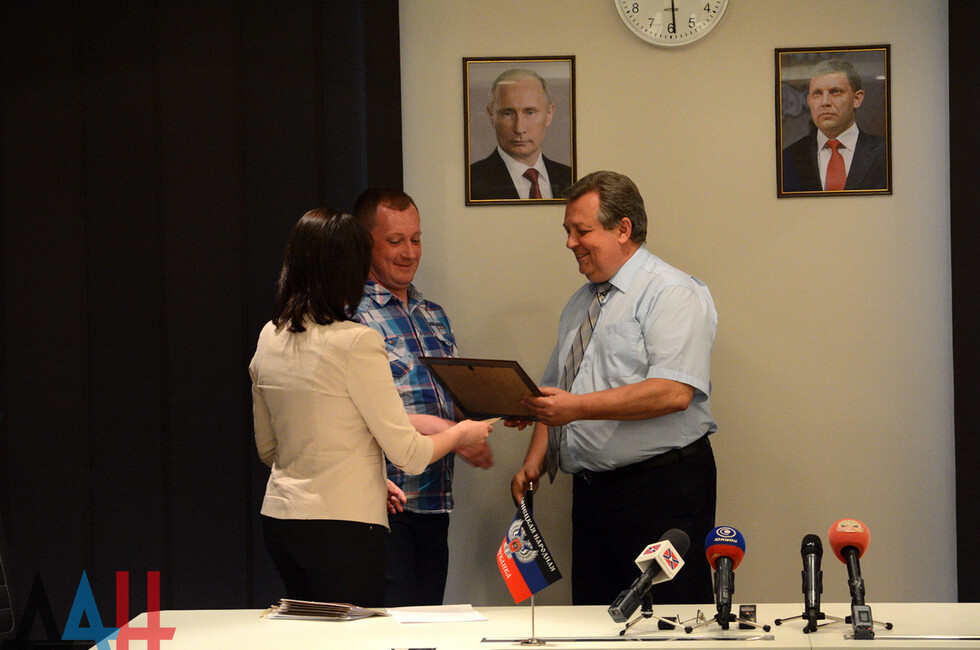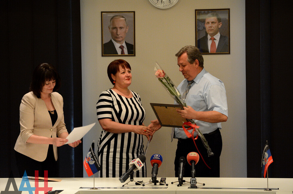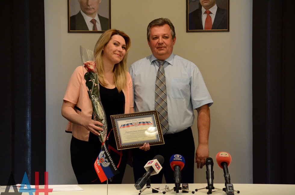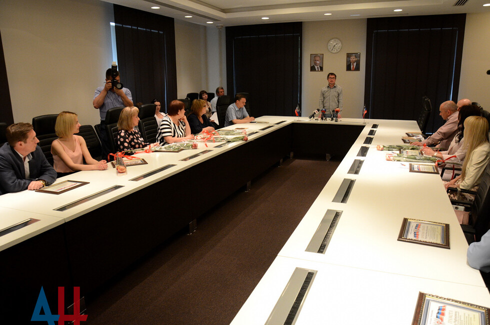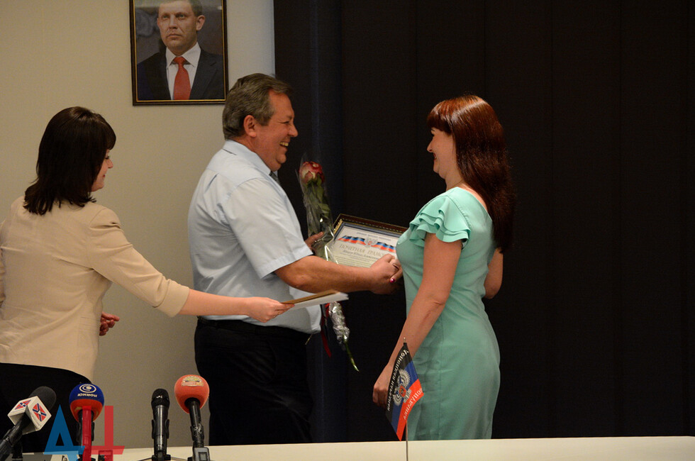 В зале собралось около полусотни работников СМИ из разных городов и районов Республики. Почетными грамотами Главы ДНР Александра Захарченко отмечены 20 человек, в том числе сотрудник Донецкого агентства новостей.