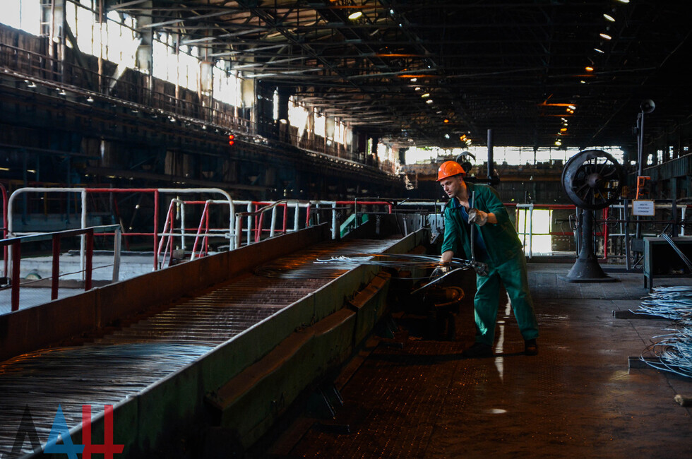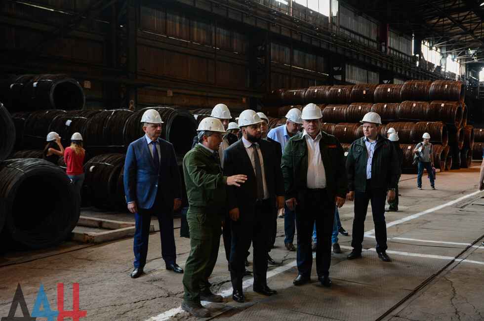 В ходе поездки на завод, в которой также принимал участие заместитель председателя Правительства Владимир Пашков, Глава ДНР ознакомился с производственным процессом - в частности, работой прокатного стана, который используется для изготовления проволоки.