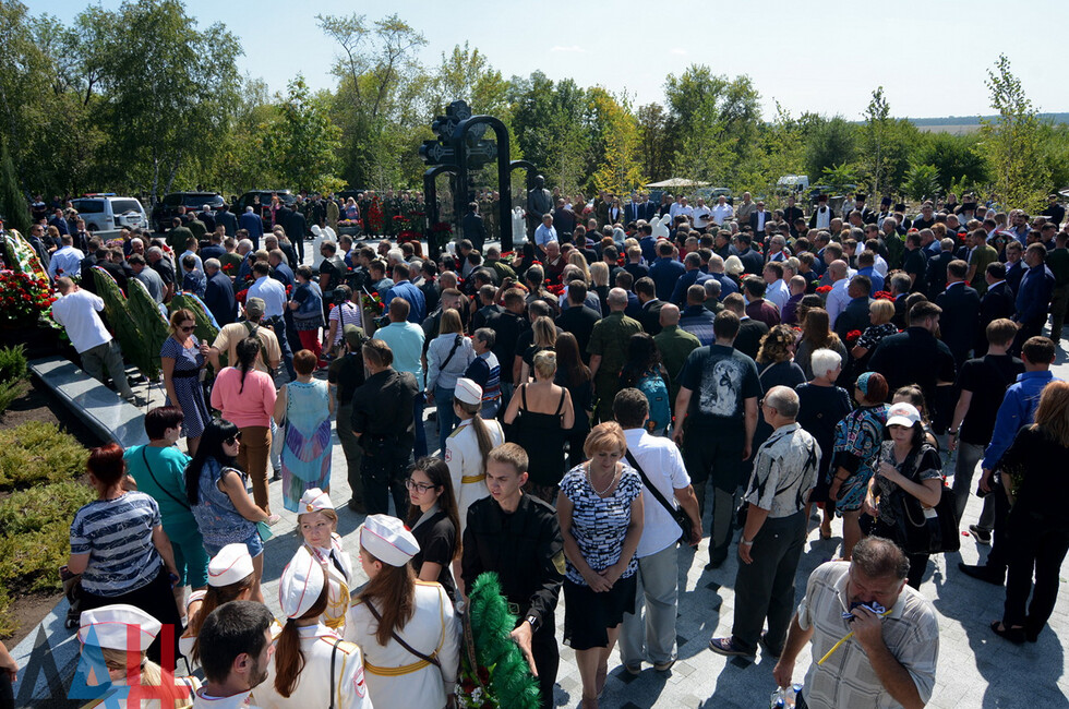 Почтить память Захарченко на кладбище «Донецкое море» пришли: Глава ДНР Денис Пушилин, Глава ЛНР Леонид Пасечник, депутаты Госдумы РФ, делегаты от Республик Южная Осетия и Абхазия. Кроме того, присутствовали родители Захарченко - Тамара и Владимир, его вдова Наталья, сослуживцы и другие жители Республики. По оценке корр. ДАН, всего собралось порядка 500 человек.