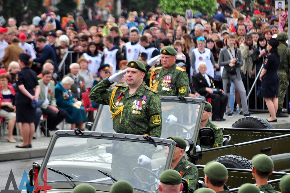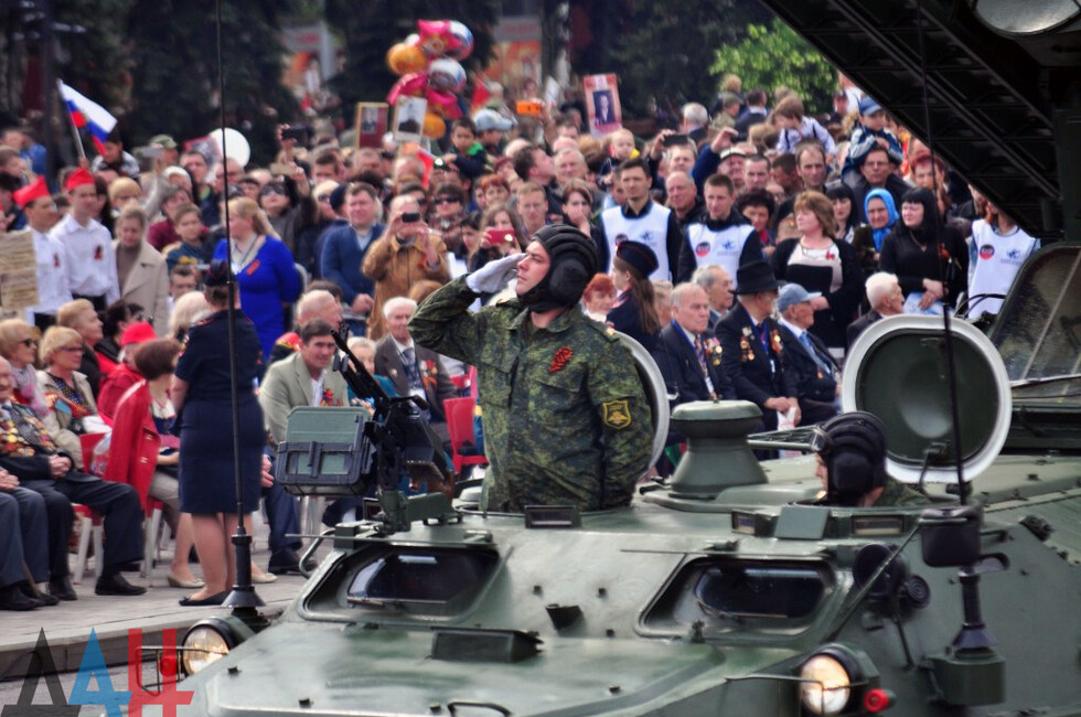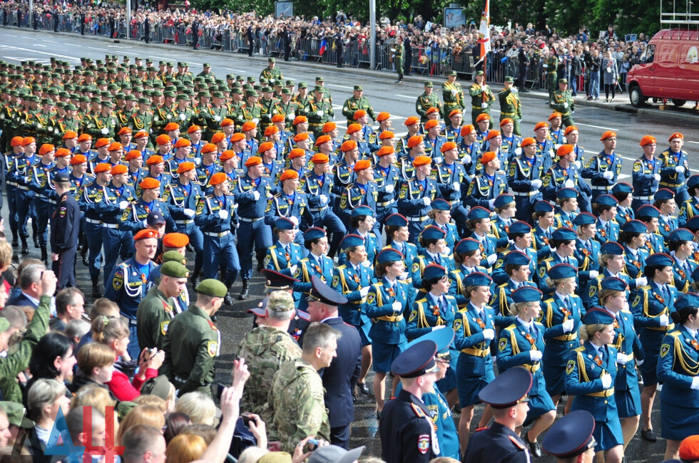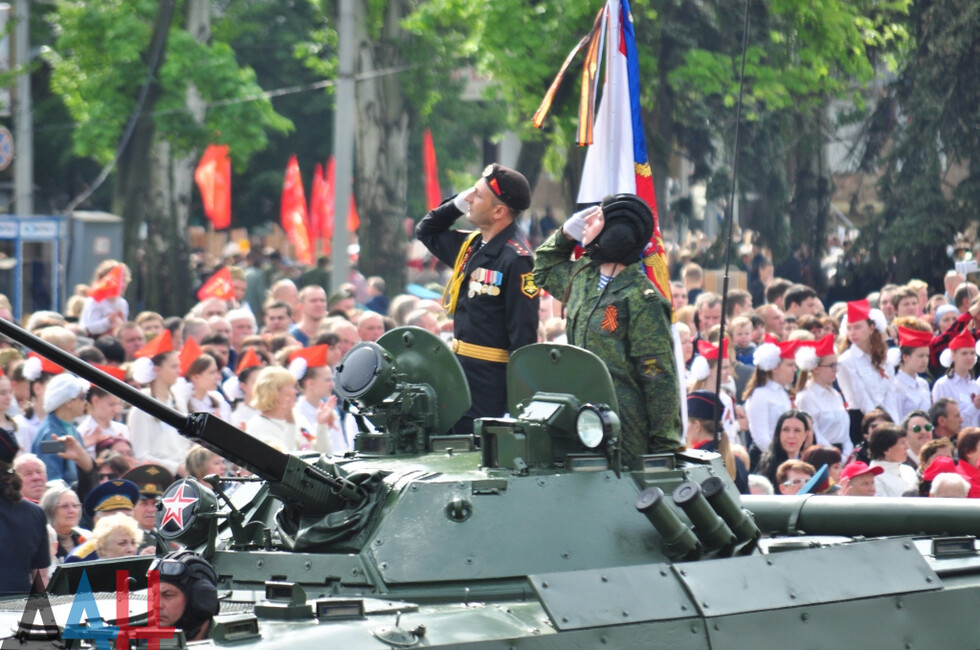 Донецк, 9 мая – корр. ДАН. Торжественный марш парадных расчетов донецкого военного гарнизона завершился в центре столицы ДНР. Прифронтовой в настоящее уже время город-герой восславил советский народ-победитель, отстоявший свободу и мир в Европе.