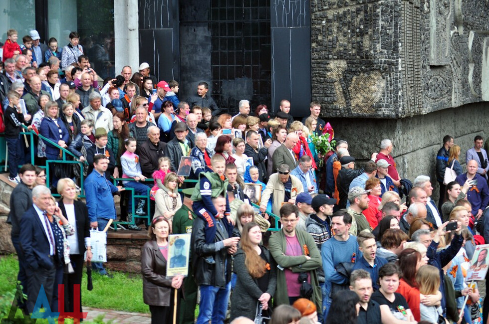 В центре Донецка собрались десятки тысяч жителей ДНР и гостей из подконтрольных Киеву районов Донбасса. Вместе с ними было руководство Республики, депутаты, деятели культуры, науки, общественные активисты. В скором времени они встанут в одну колонну, чтобы почтить память близких, павших за свободу и мир, и начнется шествие «Бессмертного полка». *ъъ