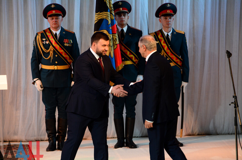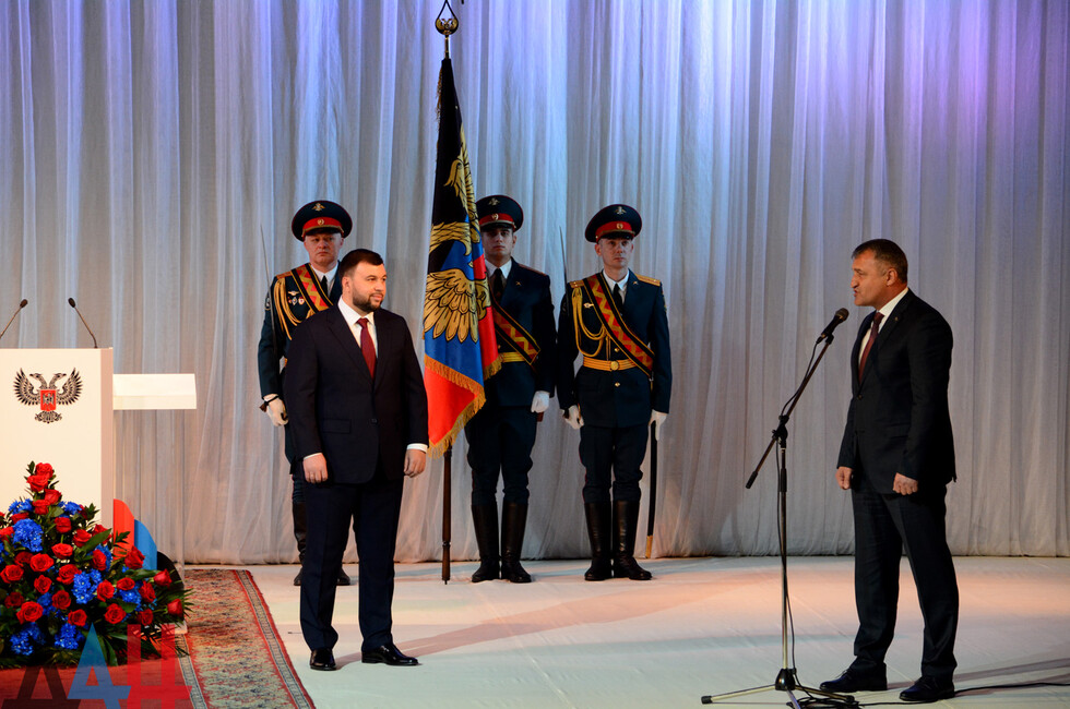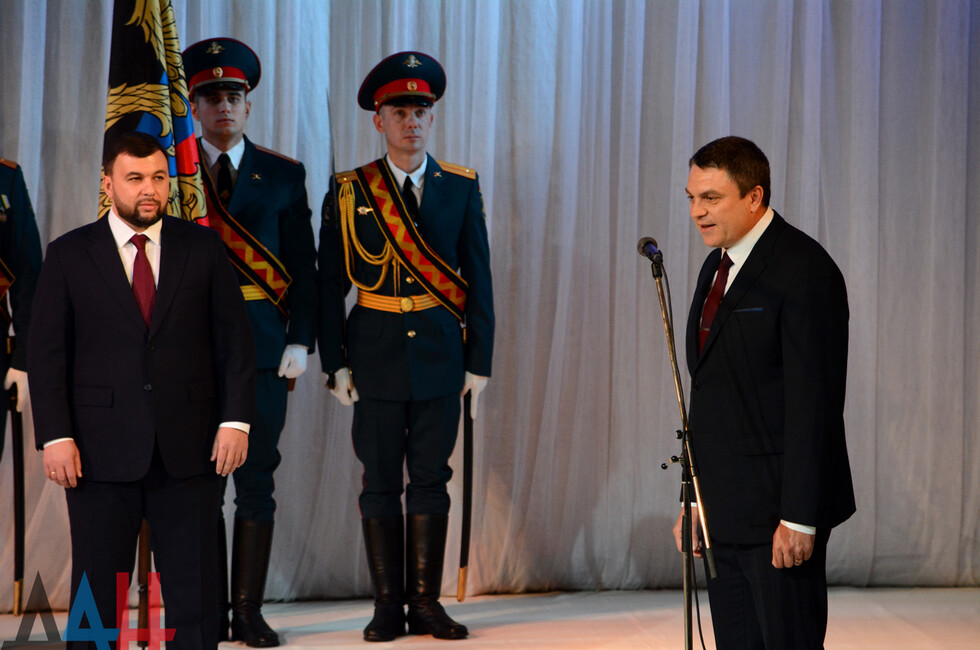 «Я уверен, что с вашим приходом ДНР ждут мир, процветание и благополучие. Мы с вами очень много сделали для того, чтобы наши отношения развивались, и уверен, что в будущем они выйдут на новый уровень», - сказал и.о. Главы Луганской Народной Республики Леонид Пасечник, поздравляя Пушилина со вступлением в должность.