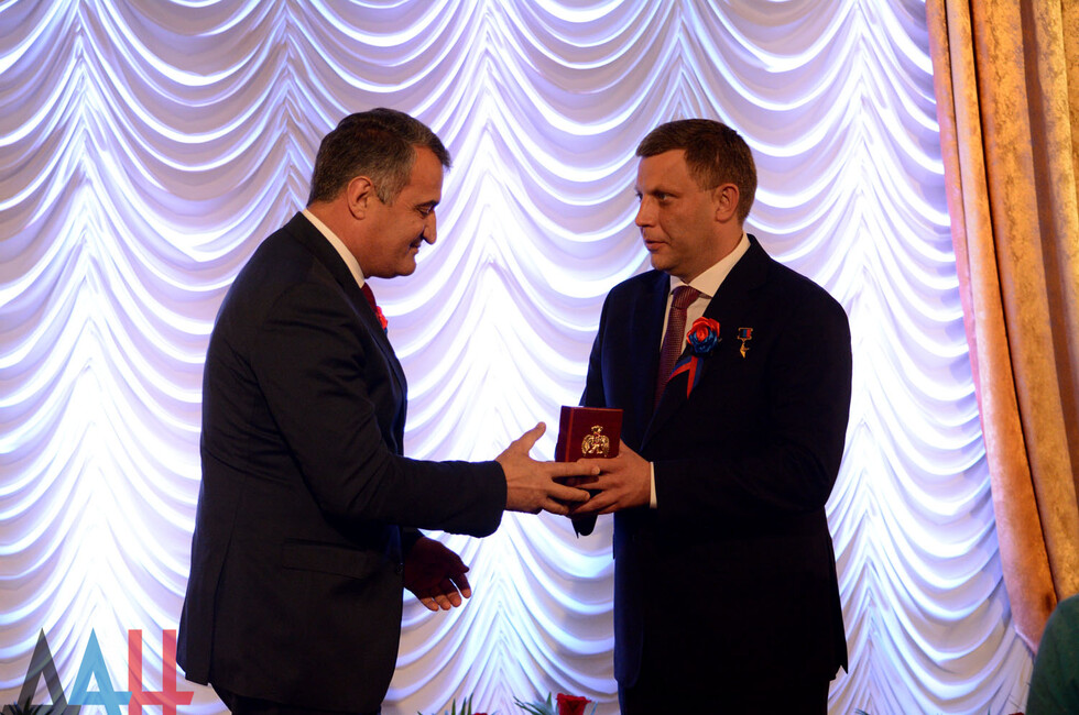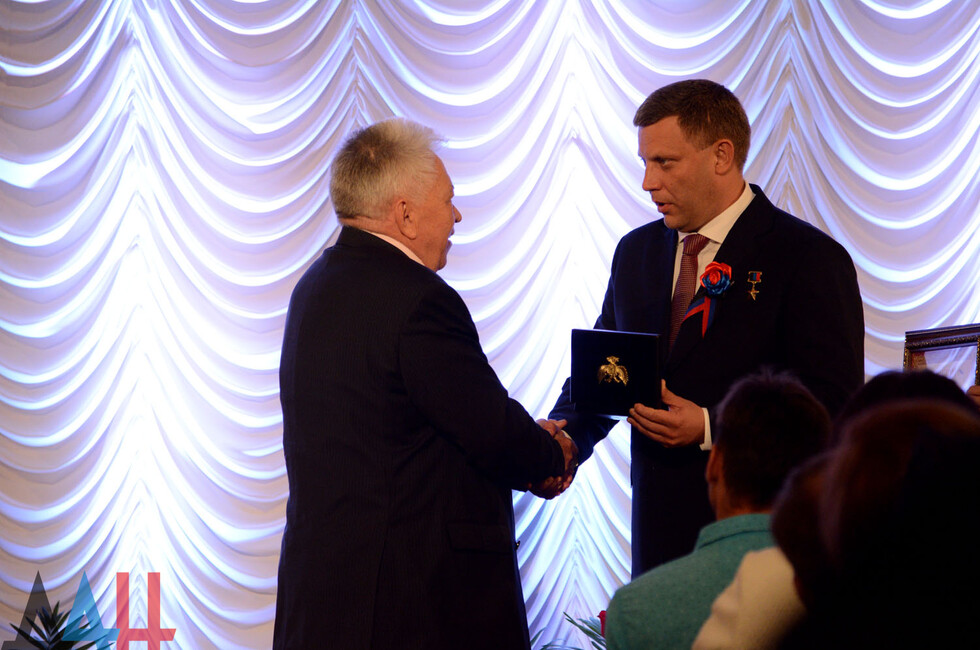 Донецк, 11 мая – корр. ДАН. Глава ДНР Александр Захарченко присвоил звания «Героя Труда» директору ИНВХ имени Гусака Эмилю Фисталю и генеральному директору Донецкого Республиканского центра материнства и детства Владимиру Чайке. В донецкой муздрамме сегодня прошло чествование граждан, добившихся высоких результатов во благо Республики.