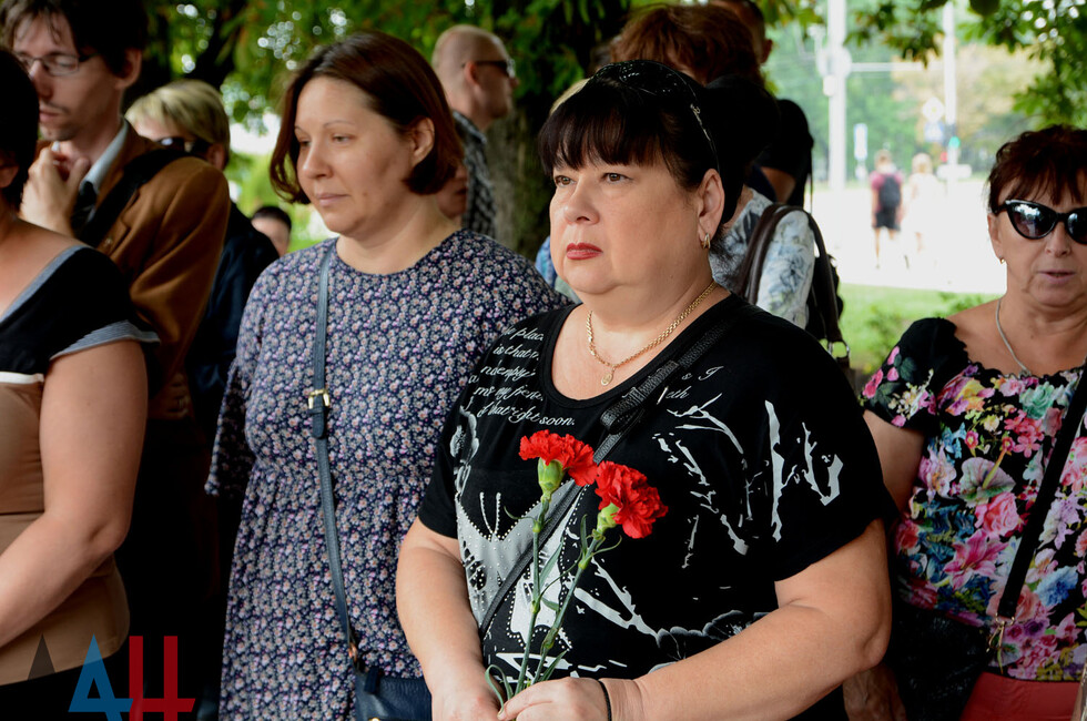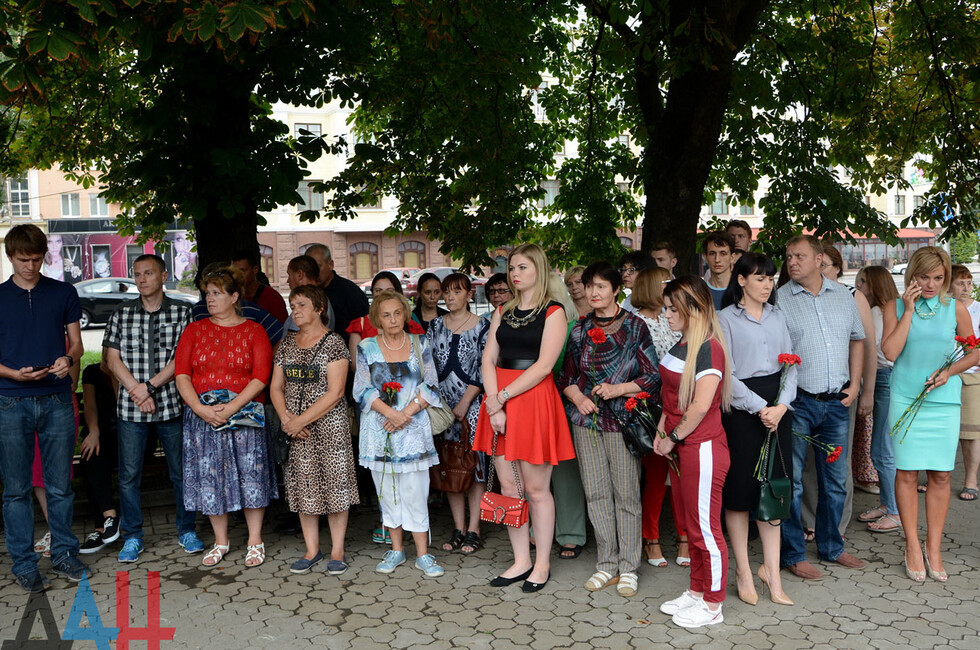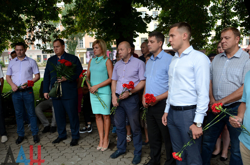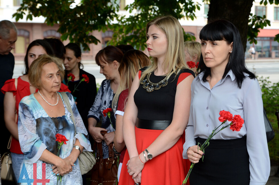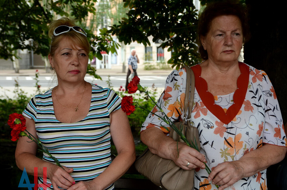 Мероприятие состоялось у арт-объекта «Россия» в районе площади Ленина в центре Донецка. Почтить память погибших пришли: руководитель Центрального исполкома общественного движения «Донецкая Республика» Алексей Муратов, общественники и жители города.