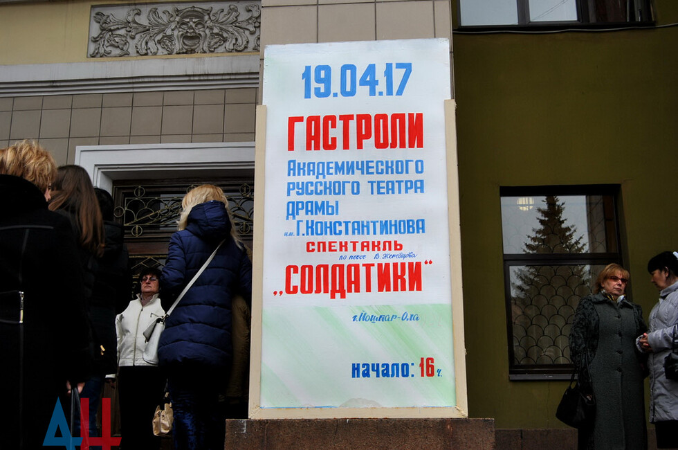 Донецк, 19 апр – ДАН. Актеры Академического русского театра драмы имени Г. Константинова из города Йошкар-Ола Республики Марий Эл (РФ) сыграли на сцене Донецкого республиканского театра юного зрителя в Макеевке спектакль «Солдатики». Показ этой постановки завершил визит марийских артистов в ДНР, который прошел в рамках программы по взаимодействию Республики с регионами Российской Федерации в сфере культуры.