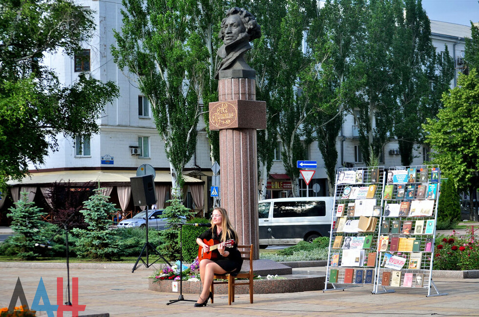 Донецк, 6 июн – корр. ДАН. Литературно-музыкальный марафон «Мой Пушкин» прошел сегодня в центре столицы ДНР у памятника поэту. Мероприятие было приурочено к 218-летию классика и Дню русского языка.