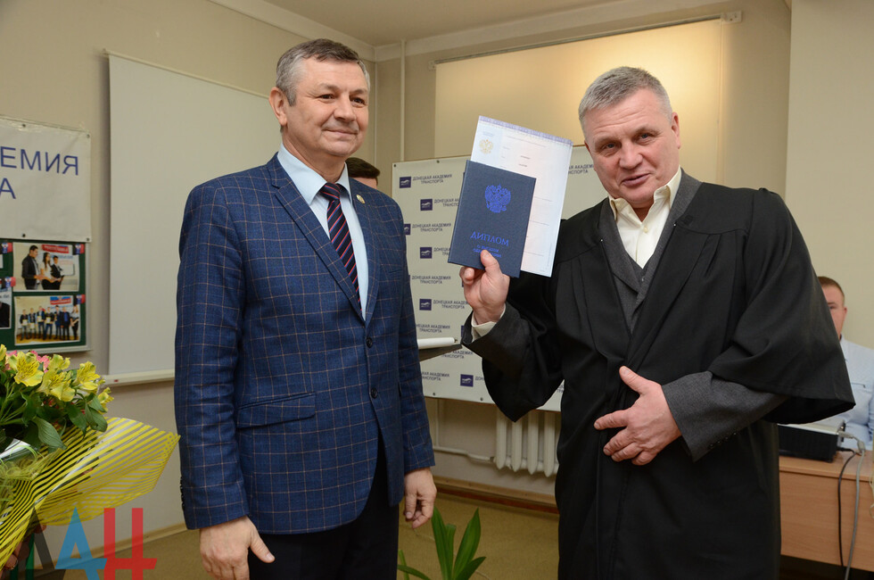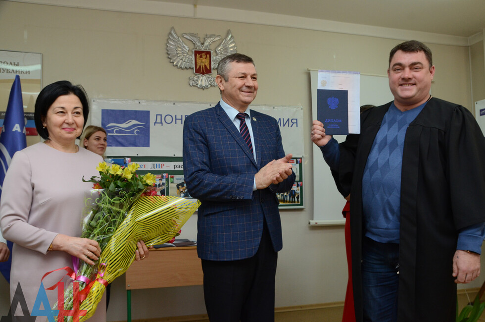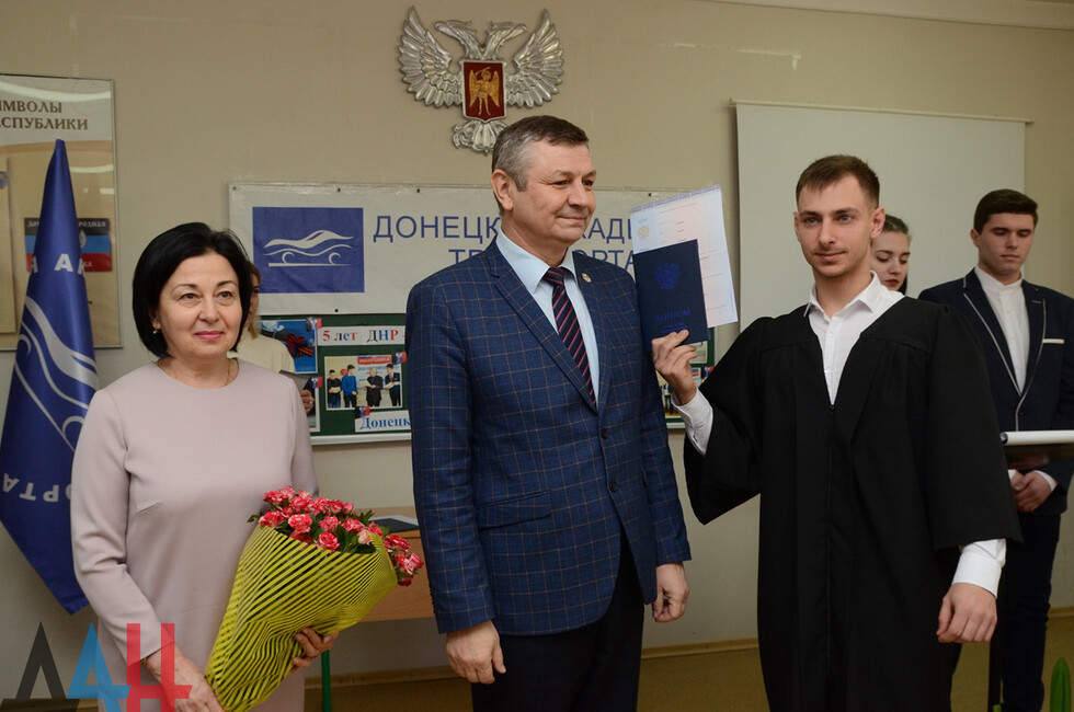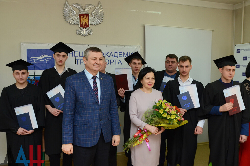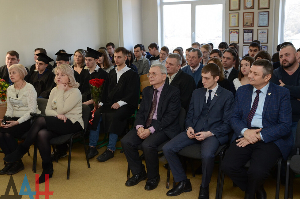 Поздравить выпускников с получением дипломов пришел министр образования и науки ДНР Михаил Кушаков, который лично вручил им документы о высшем образовании. Также на мероприятии присутствовал председатель комитета Народного Совета Республики по транспорту и связи Александр Бондаренко.