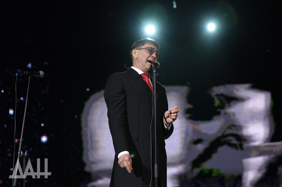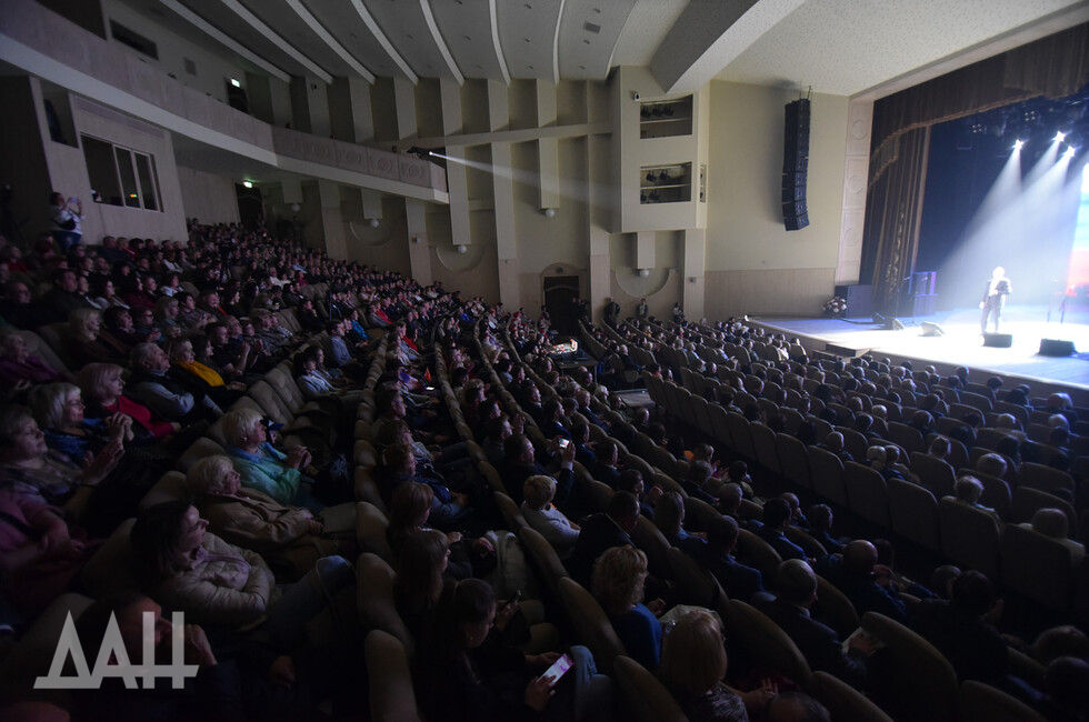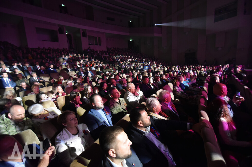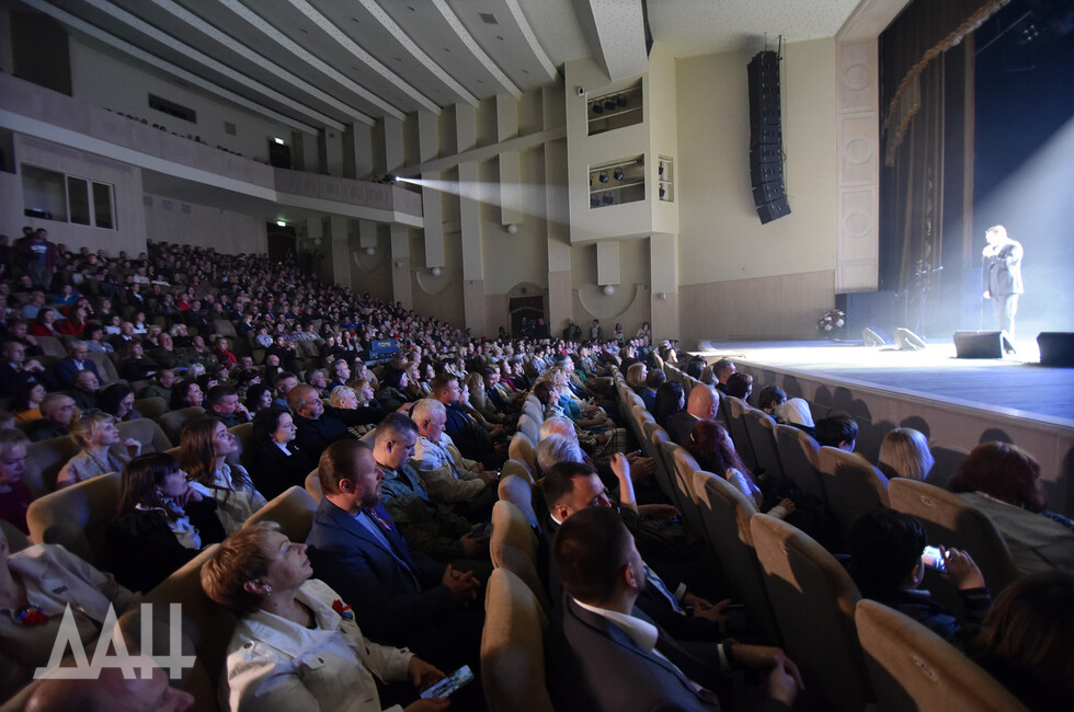 Как передает корр. ДАН, зал был забит зрителями, посмотреть на российских звезд приехал и Глава ДНР Денис Пушилин.
