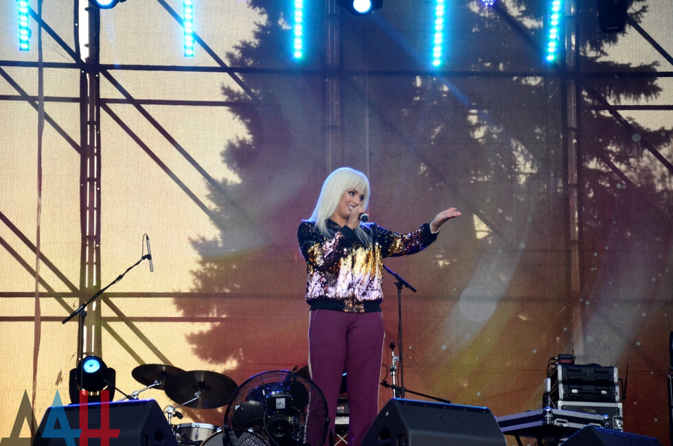 Концерт ярким выступлением открыла исполнительница Natella. Для жителей Донбасса она исполнила ряд песен, в том числе «Дам позитива» и «Светит солнце». После нее на сцену вышел певец и композитор, выпускник российской «Фабрики звезд» Марк Тишман.