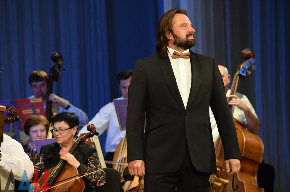 Донецк, 7 июн – ДАН. Первый в истории ДНР концерт артистов легендарного Мариинского театра «Музы против пушек» прошел сегодня на сцене Донецкого государственного академического театра оперы и балета им. Соловьяненко. Петербургские баритоны Владимир Самсонов, Эдем Умеров и Виктор Коротич выступили при полном аншлаге.