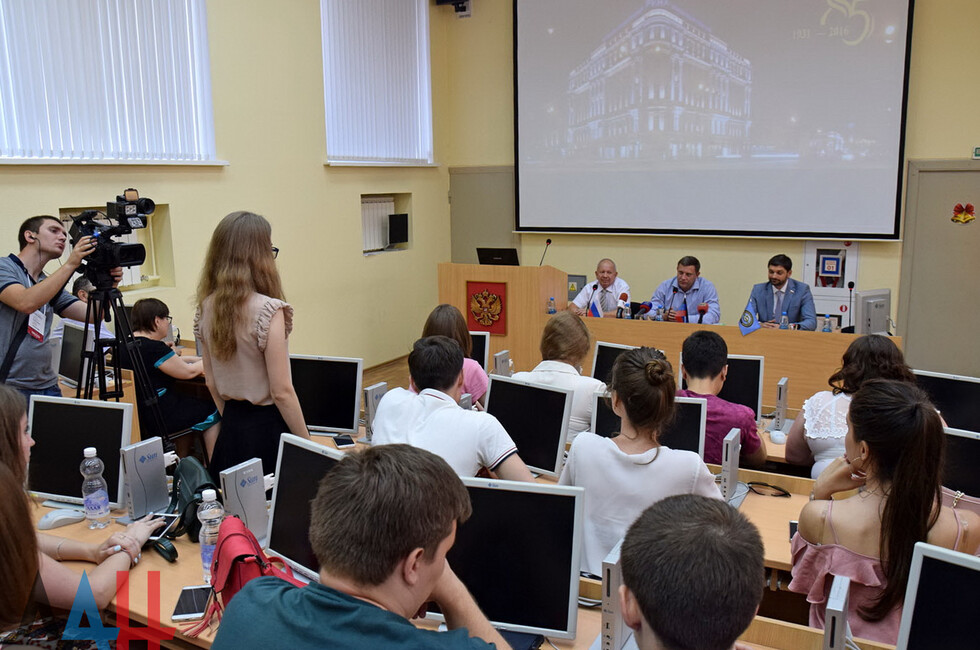 Встреча проходила в актовом зале Ростовского государственного экономического университета. На ней присутствовало около 60 человек. Треть – это студенты РГЭУ и Южного федерального университета, остальные – сотрудники вузов, представители властей разного уровня РФ, ДНР и ЛНР.
