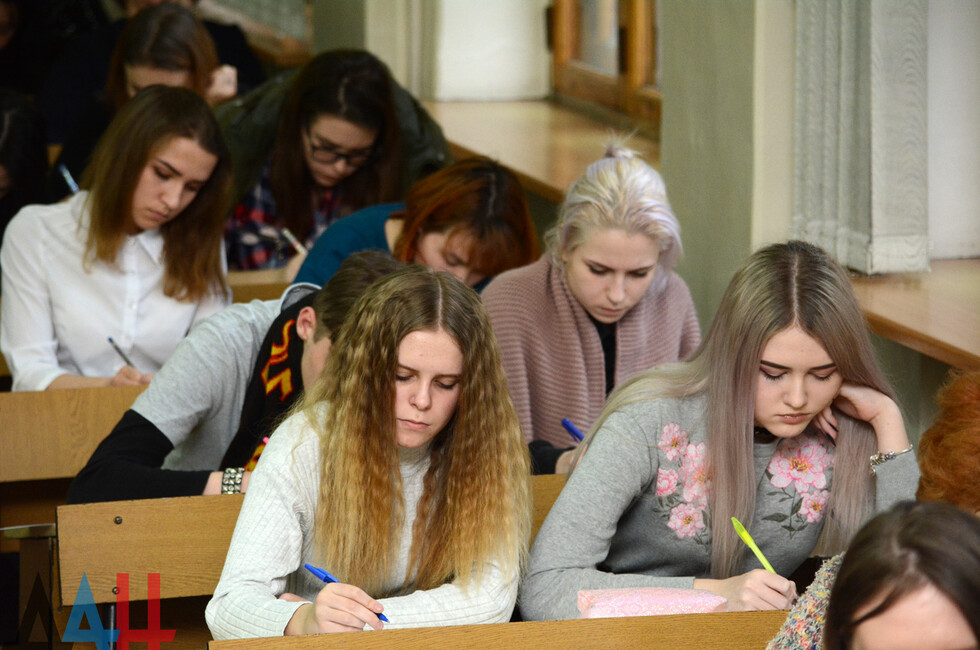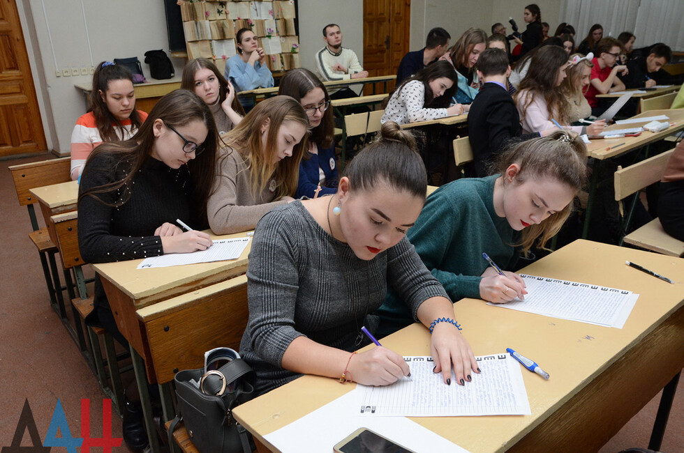 Добавим, что сегодня в ДНР проходит общереспубликанская образовательная акция «Донецкий диктант», посвященная Году русского языка и 150-летию Донецка. Диктант призван популяризировать культуру грамотного письма на русском языке. Для проведения акции было открыто более 200 площадок по всей стране.