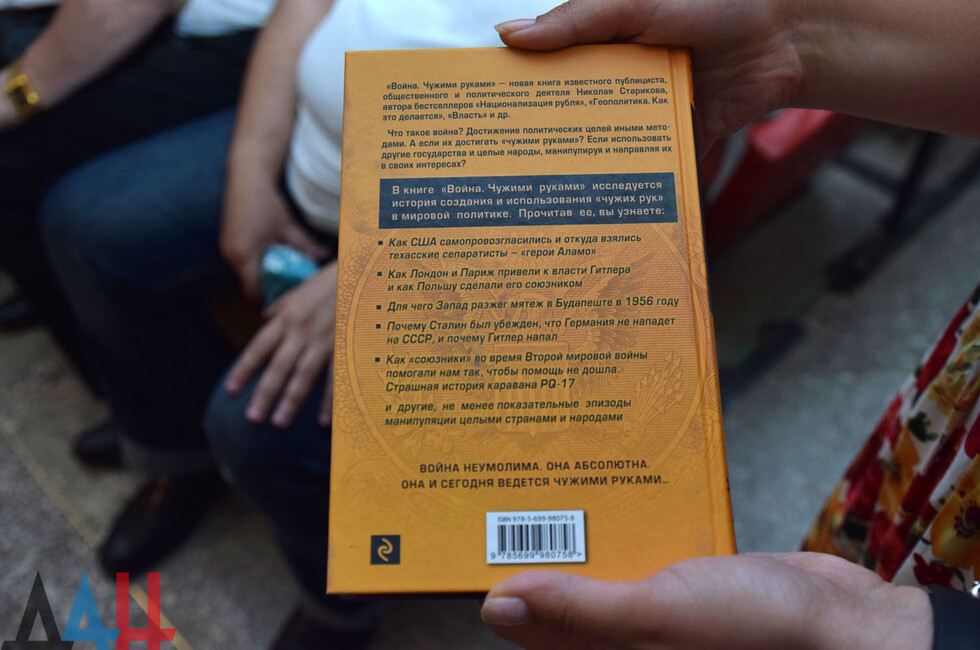 Донецк, 14 авг – корр. ДАН. Книга известного российского общественного и политического деятеля и писателя Николая Старикова «Война. Чужими руками» была представлена сегодня в Донецке. Автор презентовал свой литературный труд в конференц-зале Донецкого национального университета.