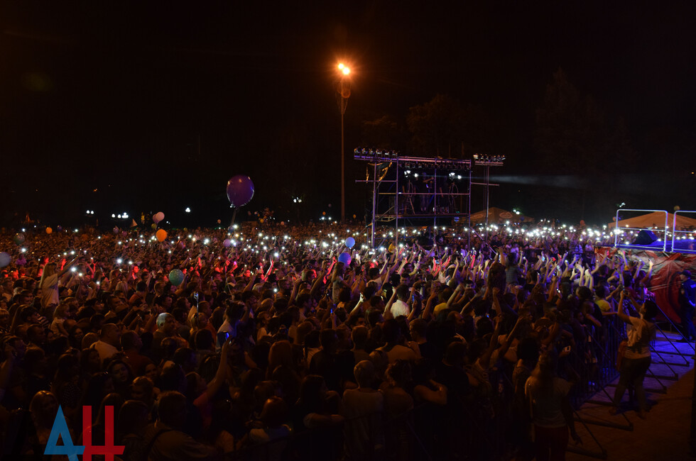 Ранее на сцене в парке имени Щербакова выступили другие российские исполнители - группа «Зверобой», Вадим Степанцов и Клава Кока. С поздравлением к собравшимся обратился и.о. главы городской администрации Донецка Алексей Кулемзин.