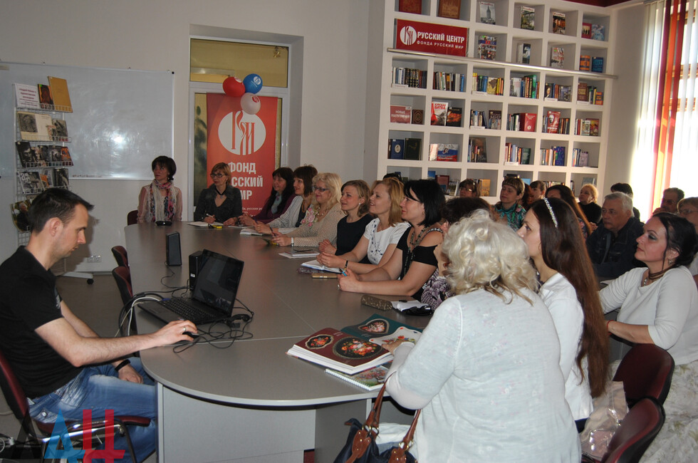 Донецк, 5 мая – корр. ДАН. Заместитель председателя художественно-экспертного совета по народным художественным промыслам Московской области, историк и музеевед Елена Куценко сегодня провела видеолекцию «История и современность народных промыслов Подмосковья» для народных умельцев Донецка и Луганска. В столице ДНР мероприятие прошло в «Русском центре» Донецкой республиканской универсальной научной библиотеки им. Крупской.
