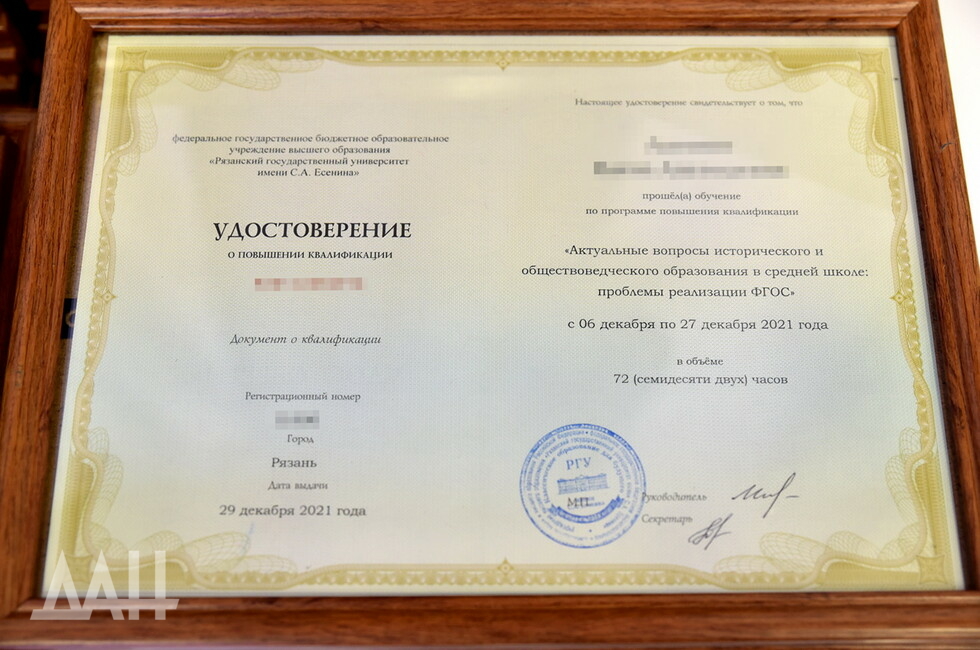 Донецк, 27 янв – корр. ДАН. Учителя русского языка и литературы, истории и обществознания ДНР получили удостоверения о повышении квалификации в Рязанском государственном университете (РГУ) им. С. Есенина. Торжественная церемония прошла сегодня в Донецком республиканском краеведческом музее.